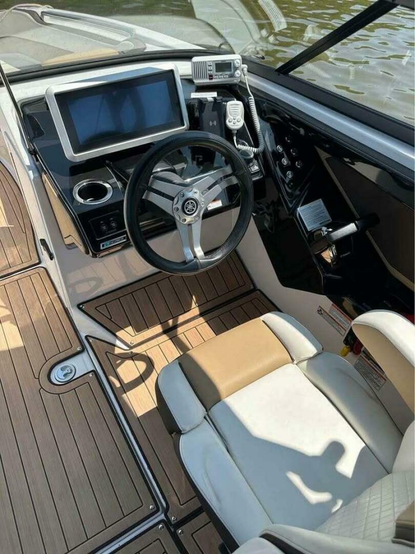 Don't miss this 2021 Yamaha 252SE with 101 hours. Spotless. Has everything you would need for a day on the water with family and friends. Thrust vectors and lateral thrusters. NOCO charger, and marine radio. All lifejackets, two person tube, tow rope etc, mooring cover. Snap in marine carpet. Porta potty- never used. The painted trailer has 5 brand new radial tires. Boat shrink wrapped every winter. Meticulously maintained with 3 years remaining on YES warranty. Always trailered, pulled, and washed after every use. Call today!