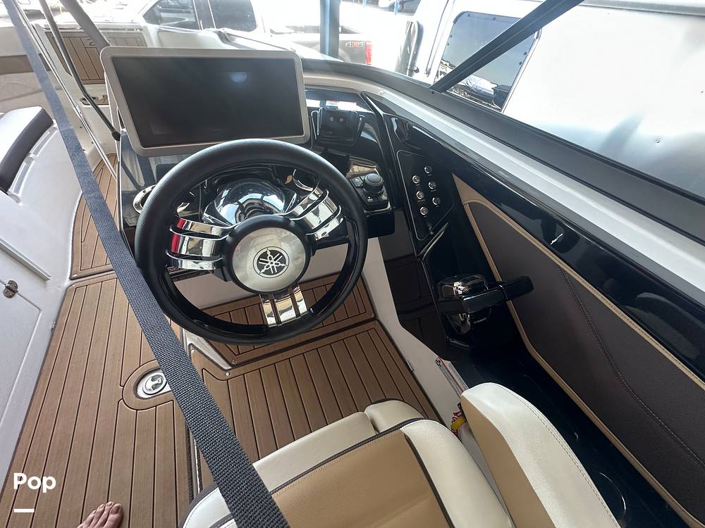 This Yamaha comes equipped with cruise control, docking lights, upgraded stereo system, adjustable seating, bow filler cushion, swim platform table, push button start, touch screen controls, transom radio controls, and much more.