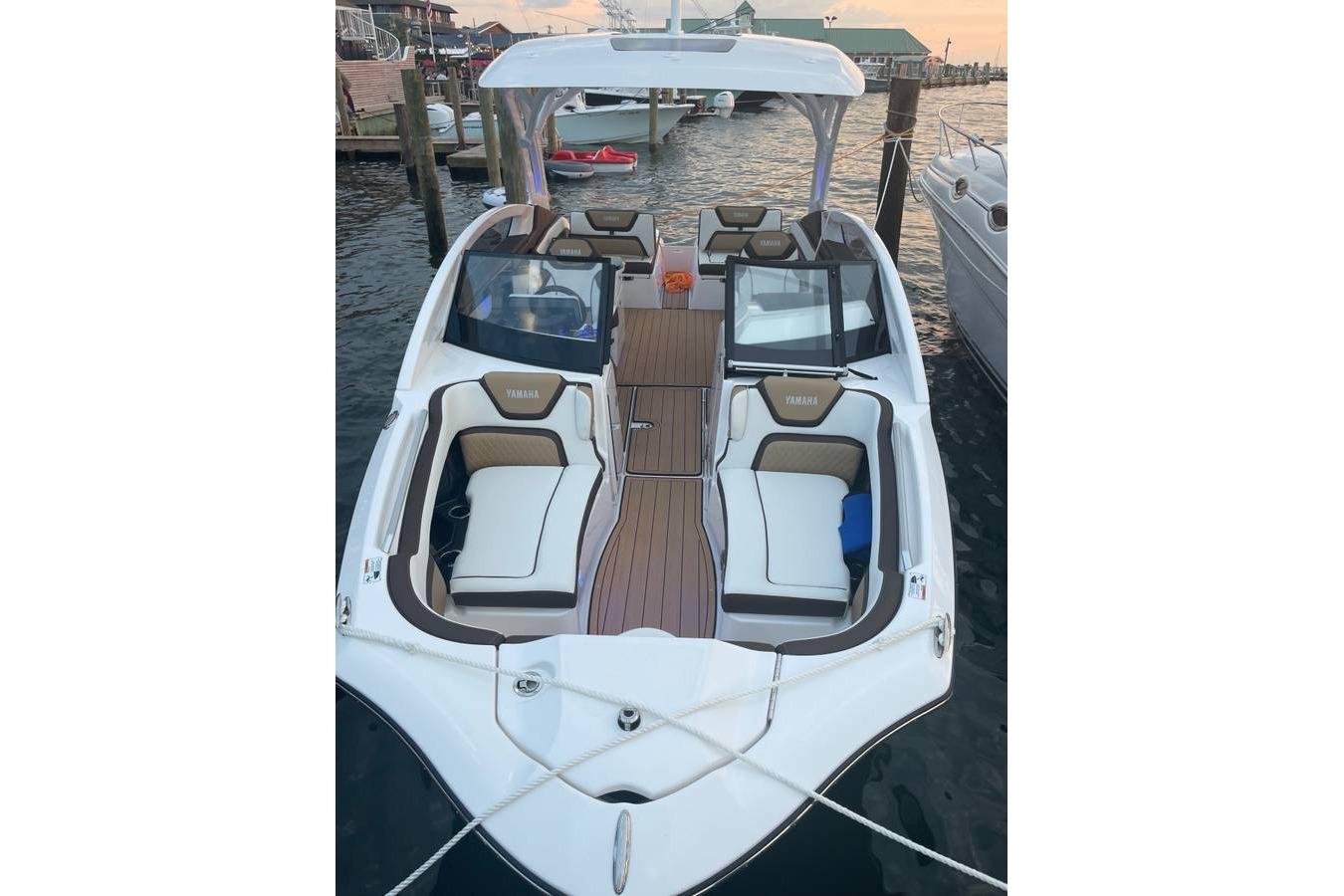 Yamaha’s 275SD delivers big-water confidence and shallow-water versatility in one 27-foot package. Twin jet propulsion means no exposed props and crisp throttle response, while Yamaha’s DRiVE system makes close-quarters maneuvering and docking intuitive, ideal for boaters at any experience level. With a single owner since new and warranty coverage through 2026, this boat is truly turn-key.