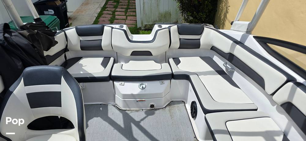 She is powered by a 1.8-liter Super Vortex High Output engine, providing impressive acceleration and top speed. The total package of features and amenities includes a premium stereo system, a folding wakeboard tower for easy storage, and marine-grade snap-in carpets.