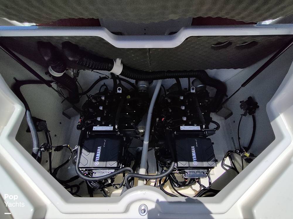 The boat truly looks like an almost-new 2021 boat. Gel coat is clean and shiny. The cushions look great with no tears or stains. The carpet looks great. The engine compartment still smells new.