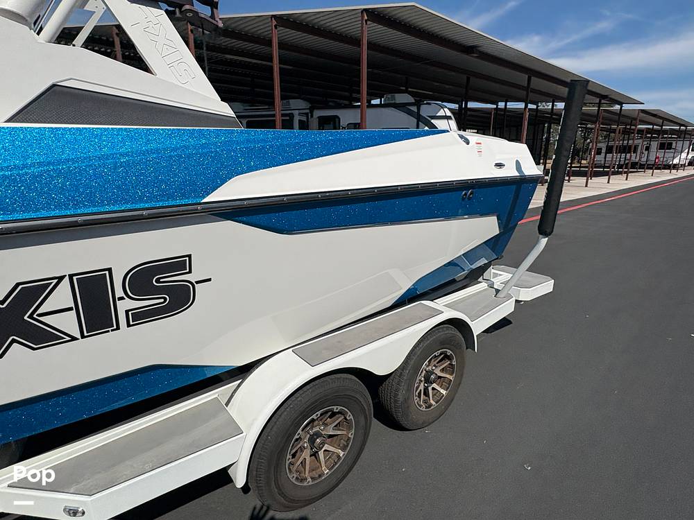 The 2022 Axis A22 is a wake and surf boat built by Axis, designed to blend the size-manageability of a midsize boat with serious wake-sports performance.