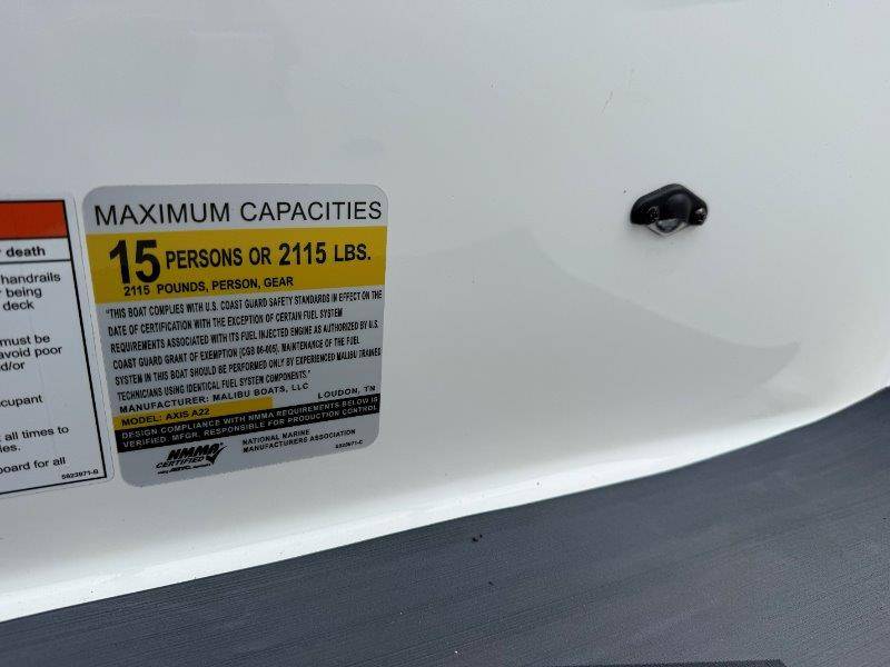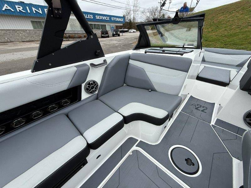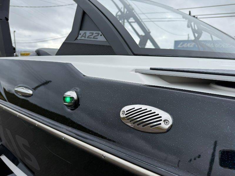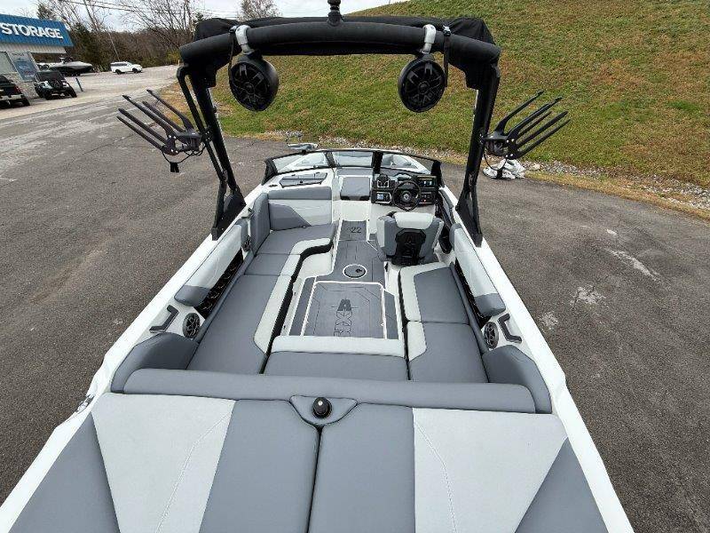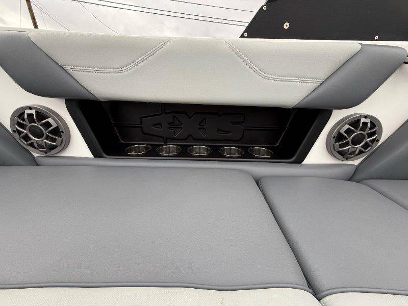 2022 Axis A22 Engine: Malibu Monsoon M5Di 345HP Swim Step w/ Door Axis Swim Pad Composite Flooring System Cushion Bead Graphite Interior CS Bimini Top and Boot w/ Rope Storage Sport Dash and Wireless Charging Stations Wedge Zero Off GPS Cruise and Compass Spinner Board Racks Battery Set Up Stainless Cup Holders Soft-Grip Flooring Depth Finder Wet Sounds Icon 8 Speakers Subwoofer 10inch ChillAX Cockpit Flip Up Seats Shrinkable Shipping Cover Underseat Lighting AW20 Shock Package Docking Lights Ski Pylon CS Boat Cover and Swimboard Cover Ballast HIFLO Seat Bolster Pull Up Cleats Surf Gate w/ Axis Surfbands Stereo Remote