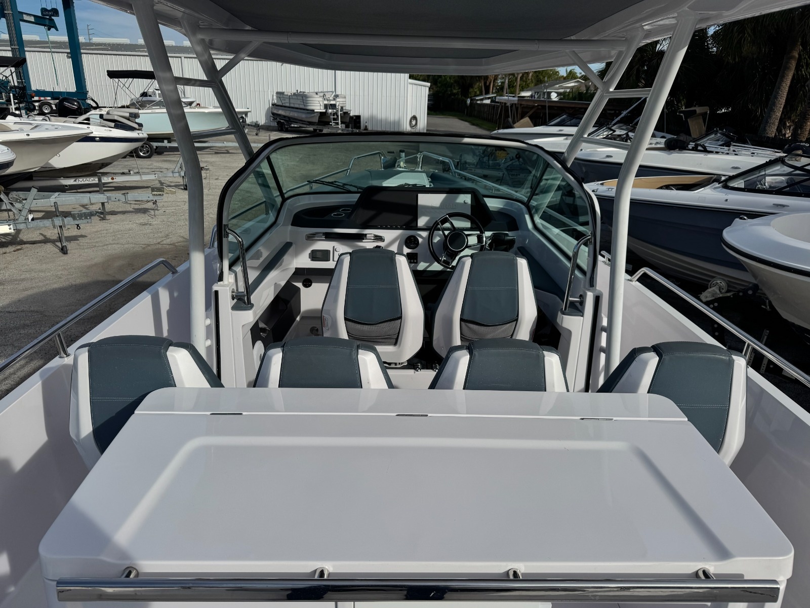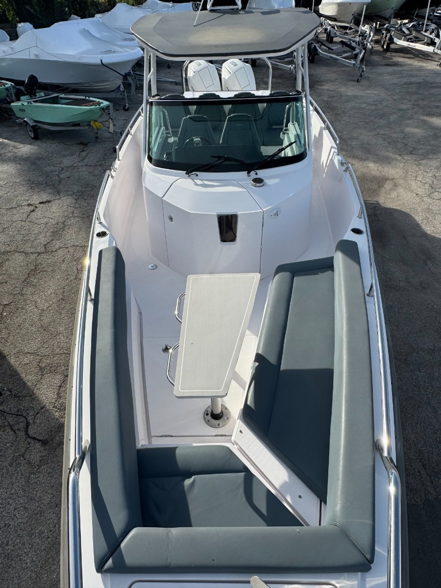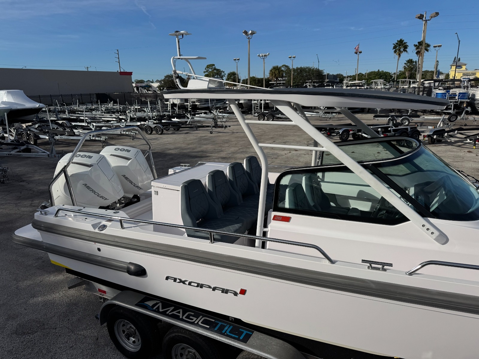 Options Include: Ski/tow bar, Simrad VHF, Simrad NSSEVO3S 16inch, Bow Thruster, Vacuflush head, Windlass Anchor, boat is fully inspected including a recent 300-hour service on both Mercury outboards and a 3-month warranty. Center console boats have traditionally been made solely with fishing activities in mind. The Axopar 28 TT breaks that tradition. This is our take on how a center console boat can be further enriched by offering the flexibility to handle both fishing trips and social gatherings with its versatile deck layout while maintaining the same modularity and customer-centric solutions that our sports-weekender range is known for.