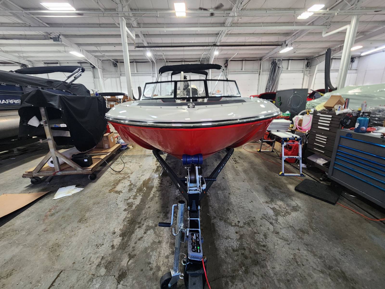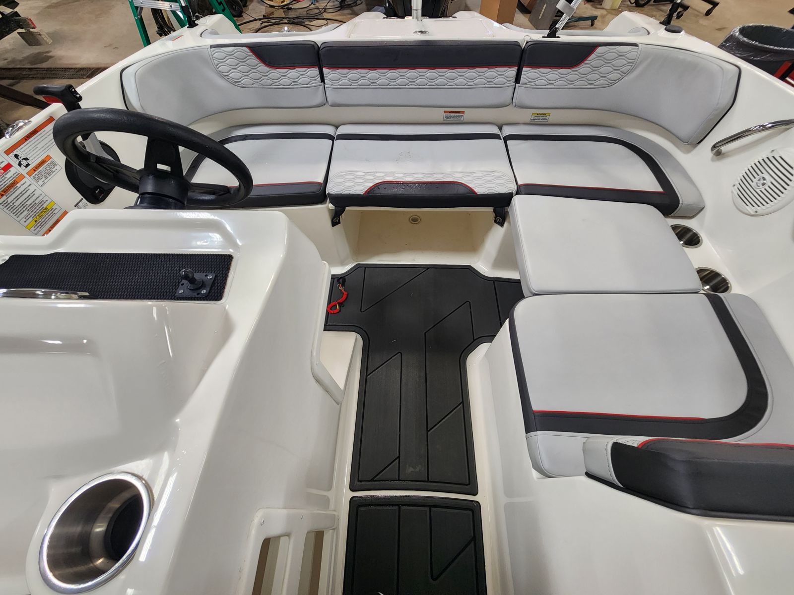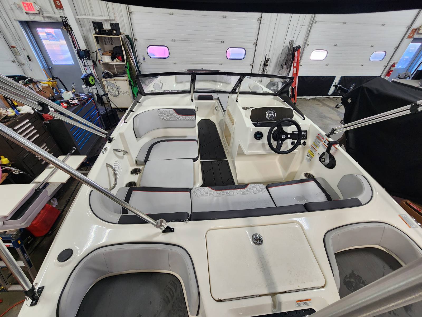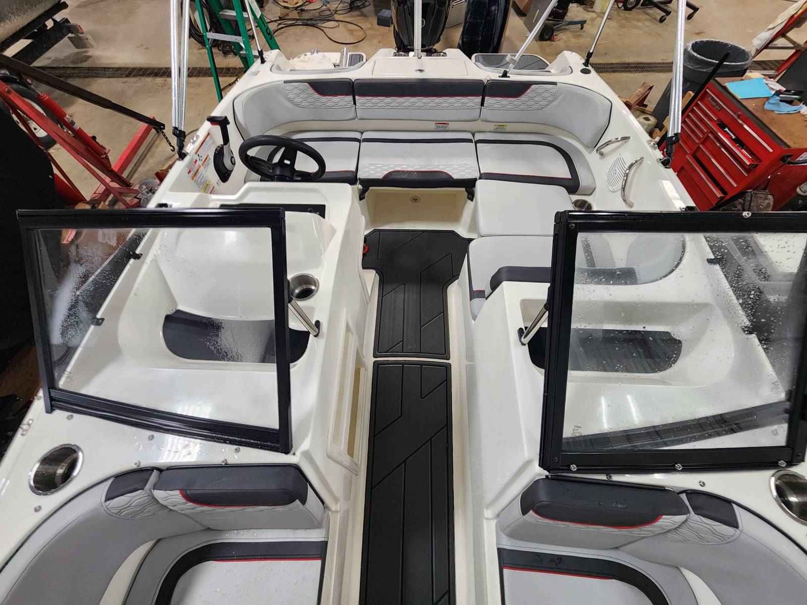 Clean deck boat powered by a Mercury 90hp Four stroke and includes trailer. For additional information call us today at 800-875-2620 and select the location nearest you.