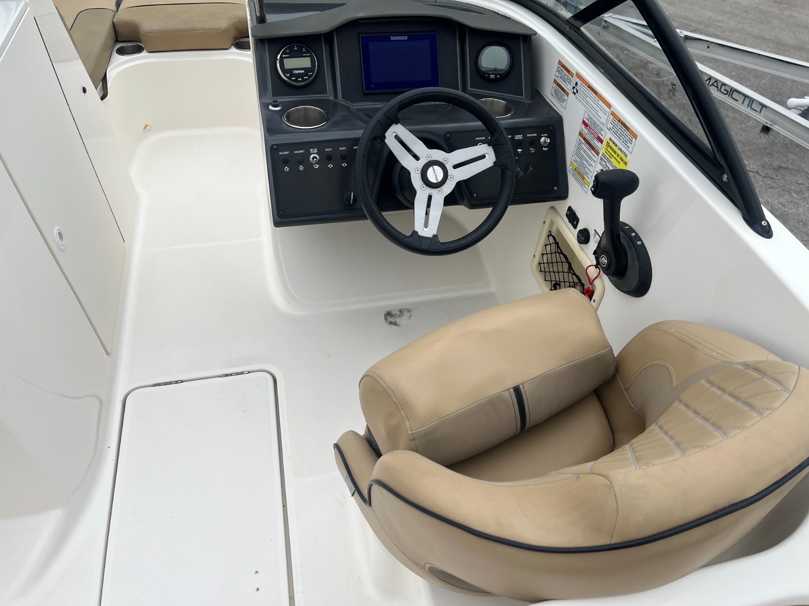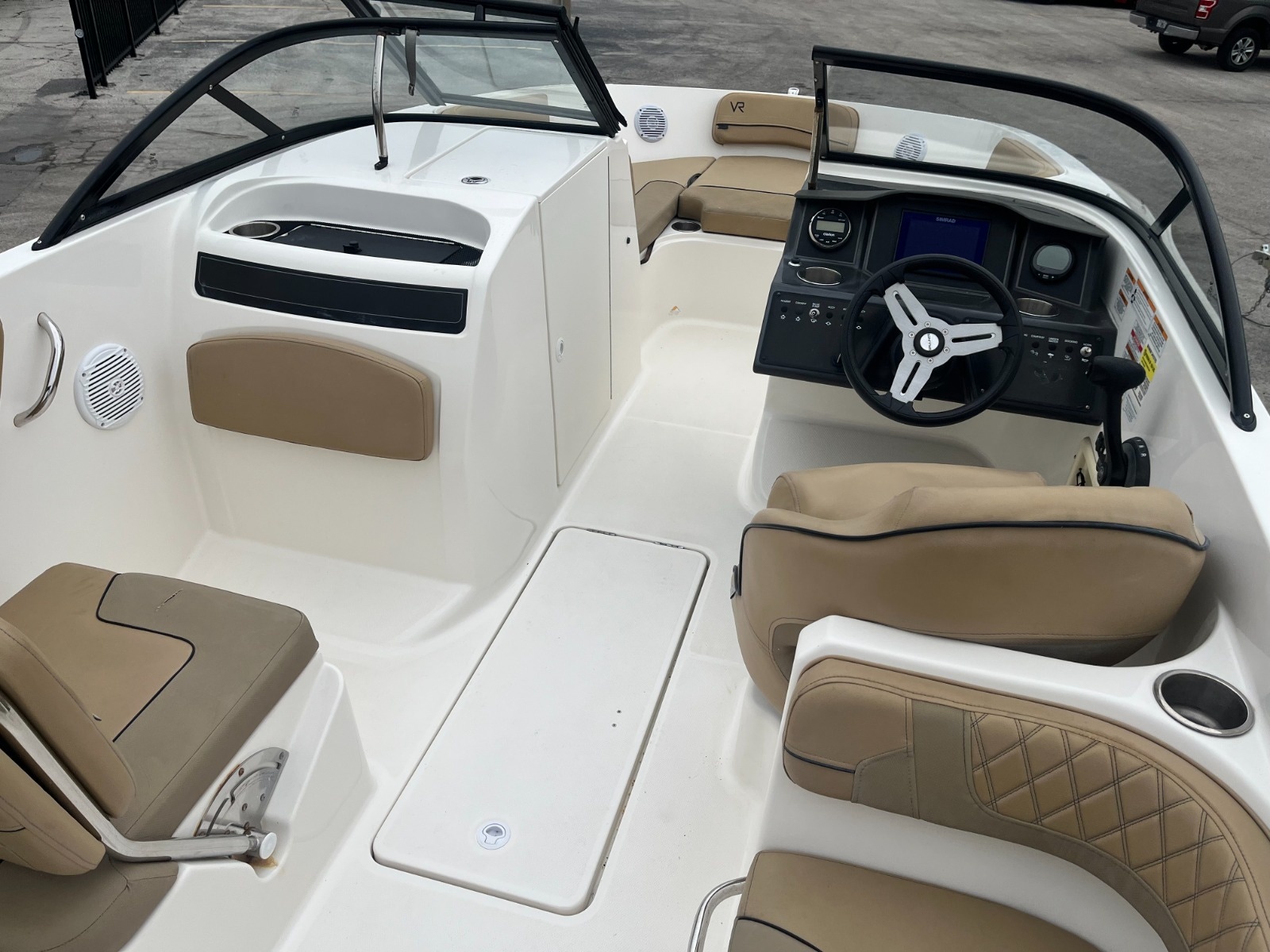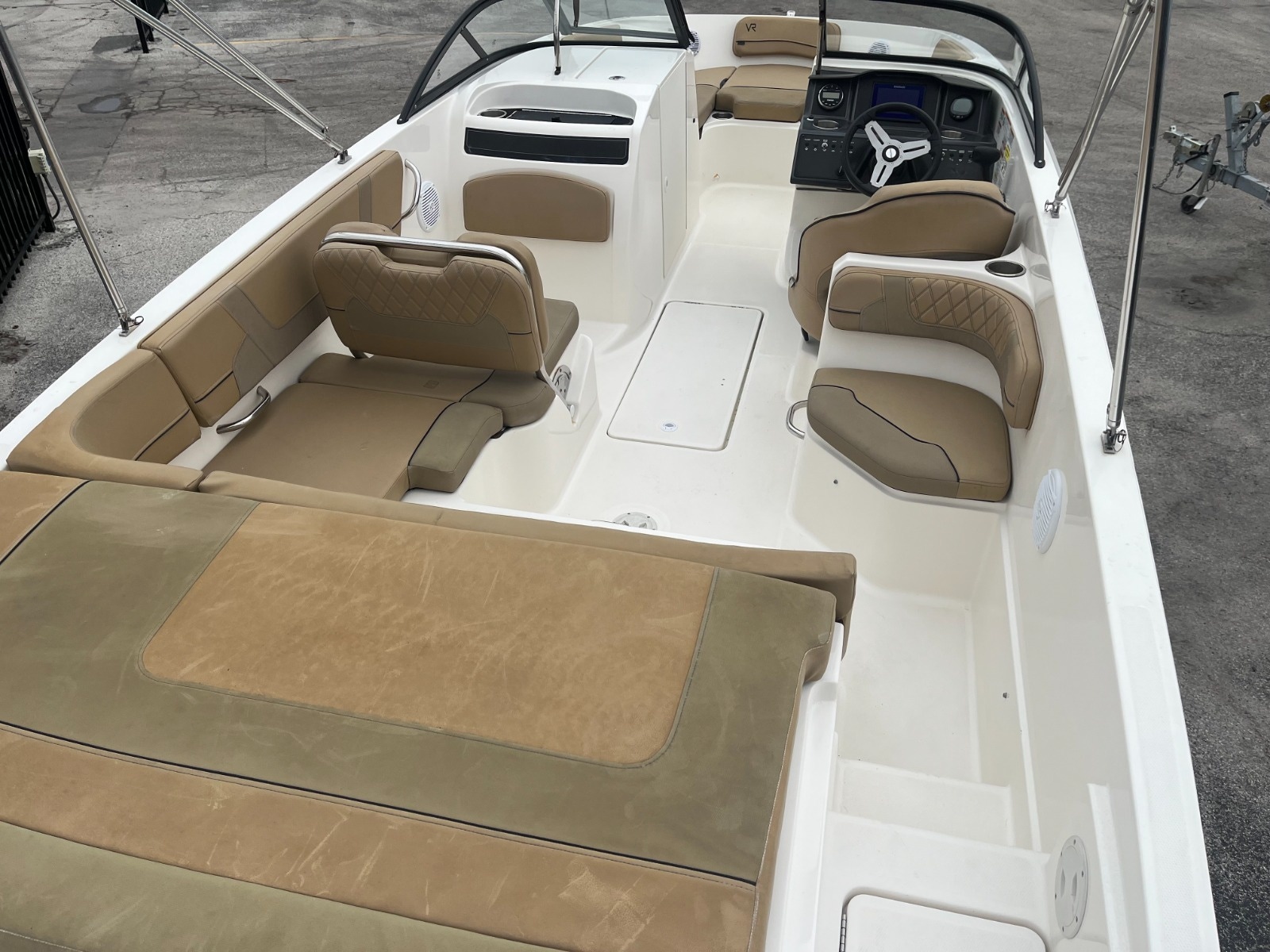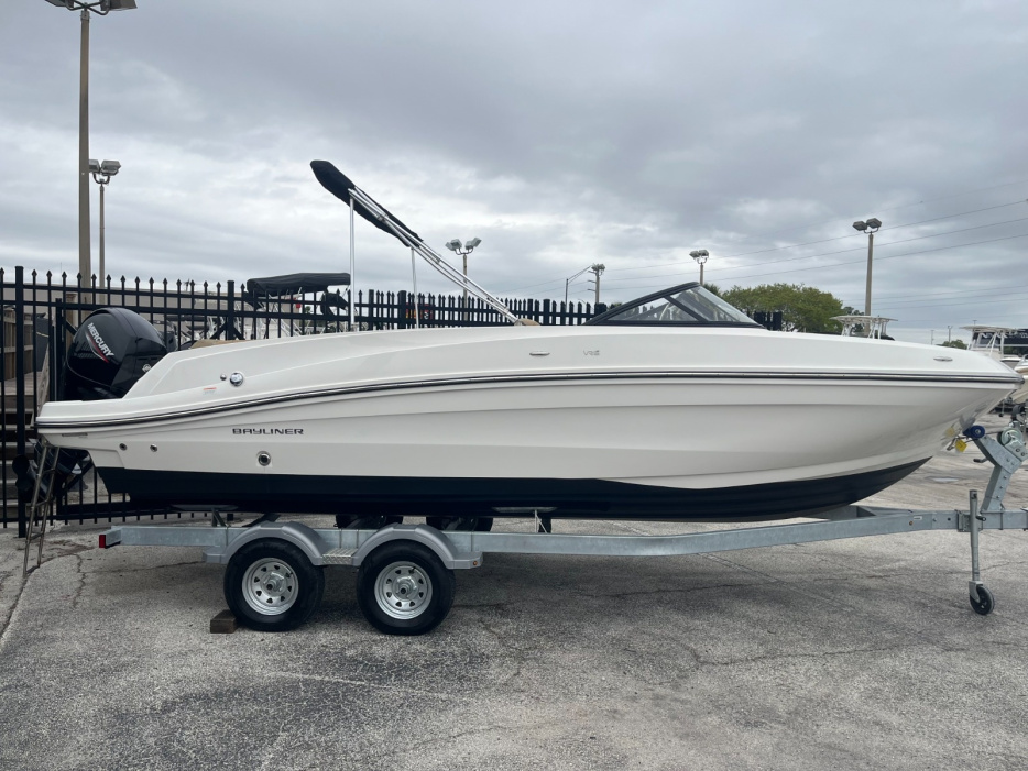 A larger version of our new VR5, the VR6 is also all about space and unparalleled roominess. It combines Bayliner category-leading BeamForward design and new AftAdvantage concept which increases the self-draining cockpit seating area by adding the swim platform at the end of the running surface. This boat maximizes space and value like never before regardless of whether you choose outboard or sterndrive power. We have several in stock today. Easy financing available.