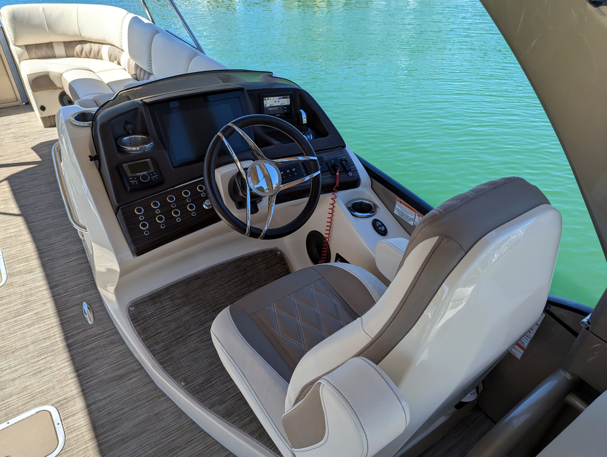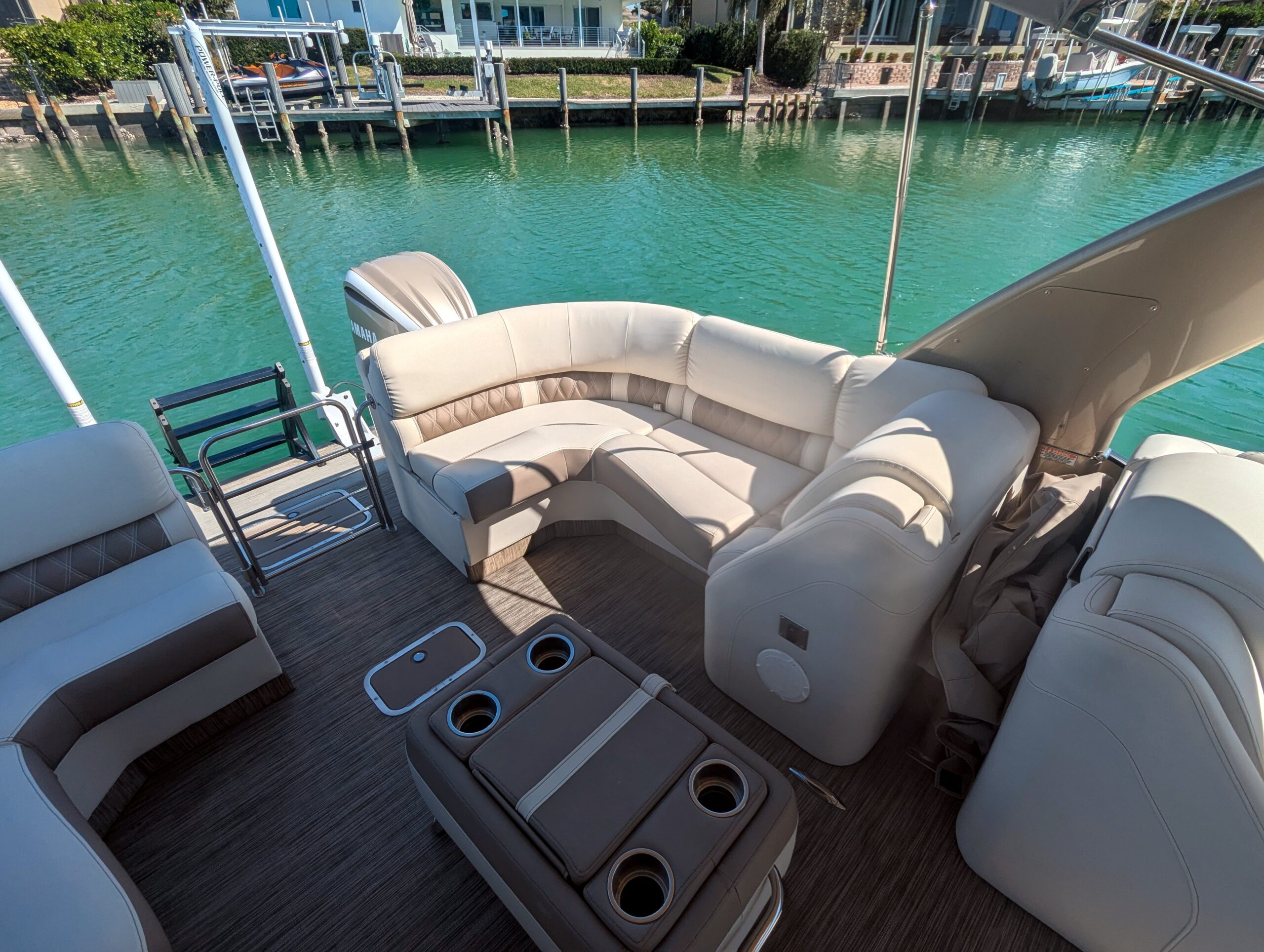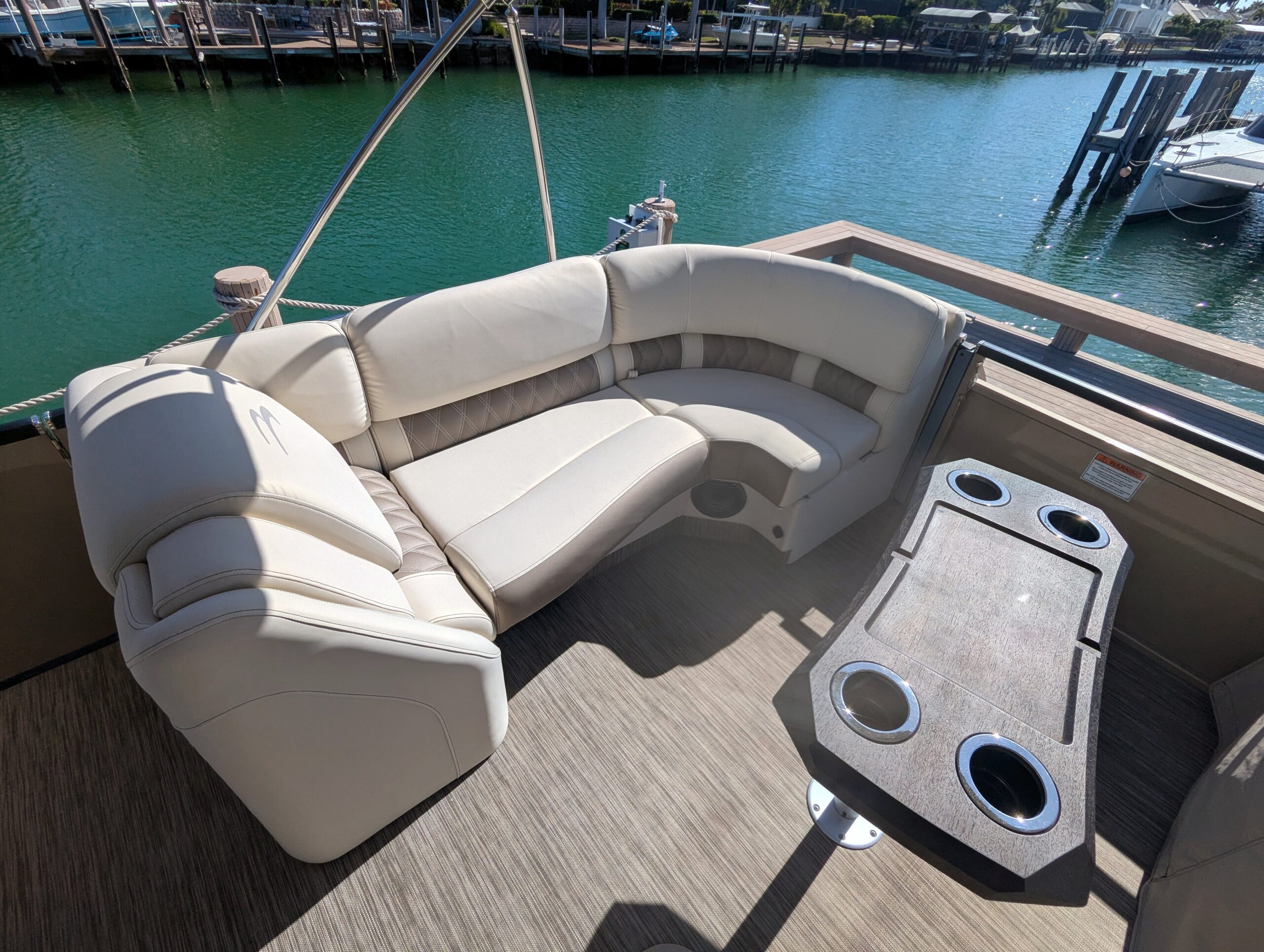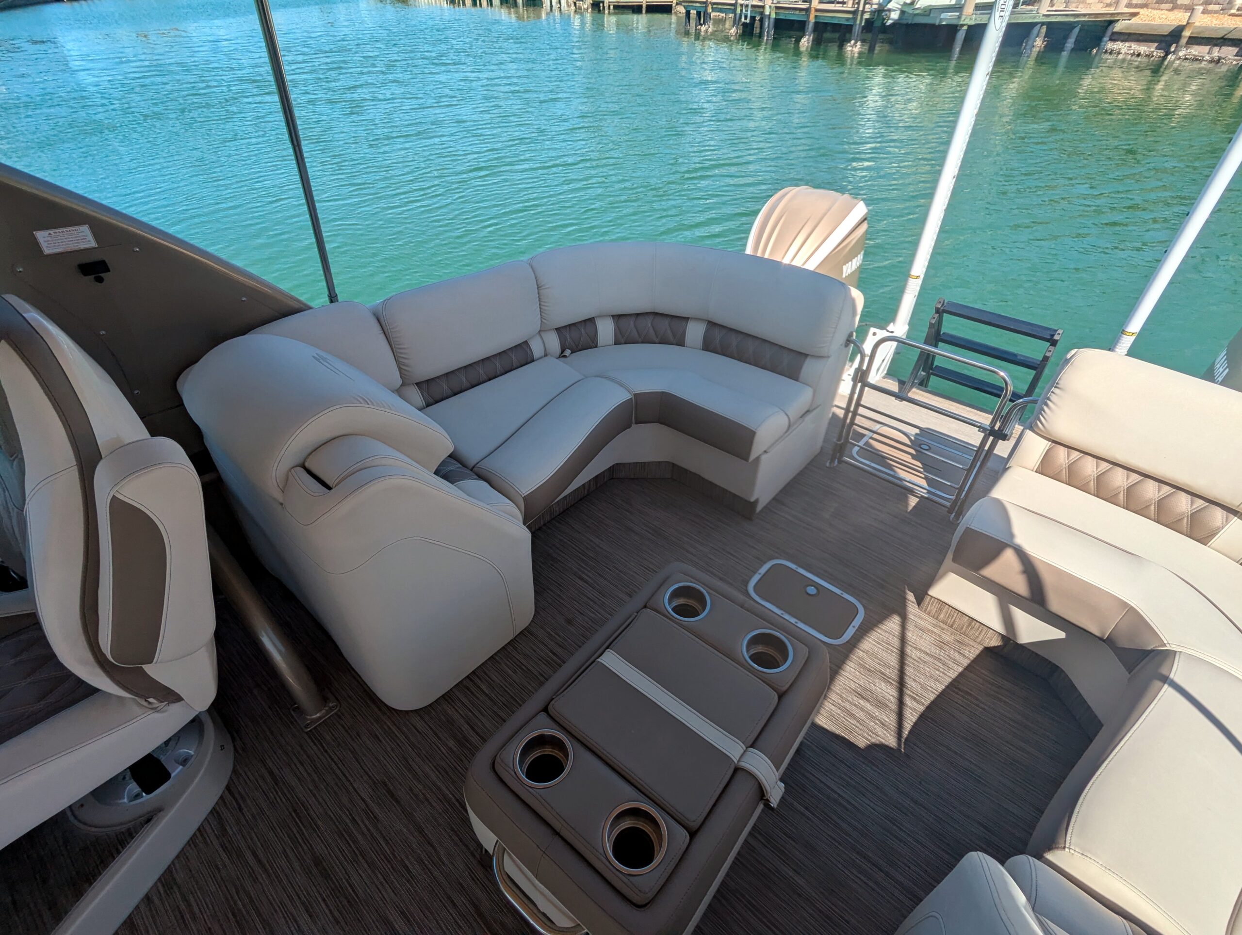 A double bimini arch provides excellent shade and completes the sleek, upscale profile of this boat. Every detail reflects Bennington’s top-tier craftsmanship and thoughtful design.