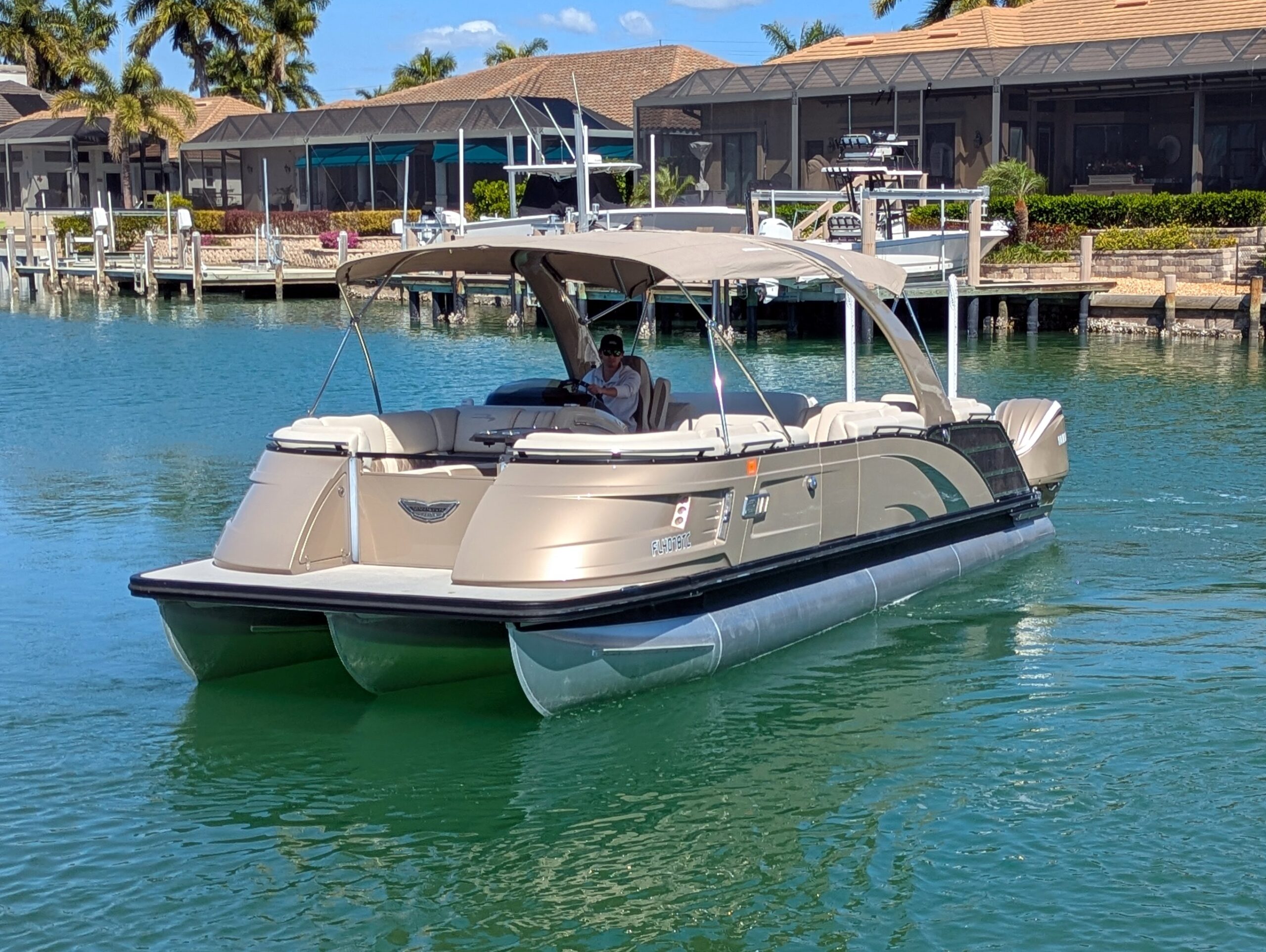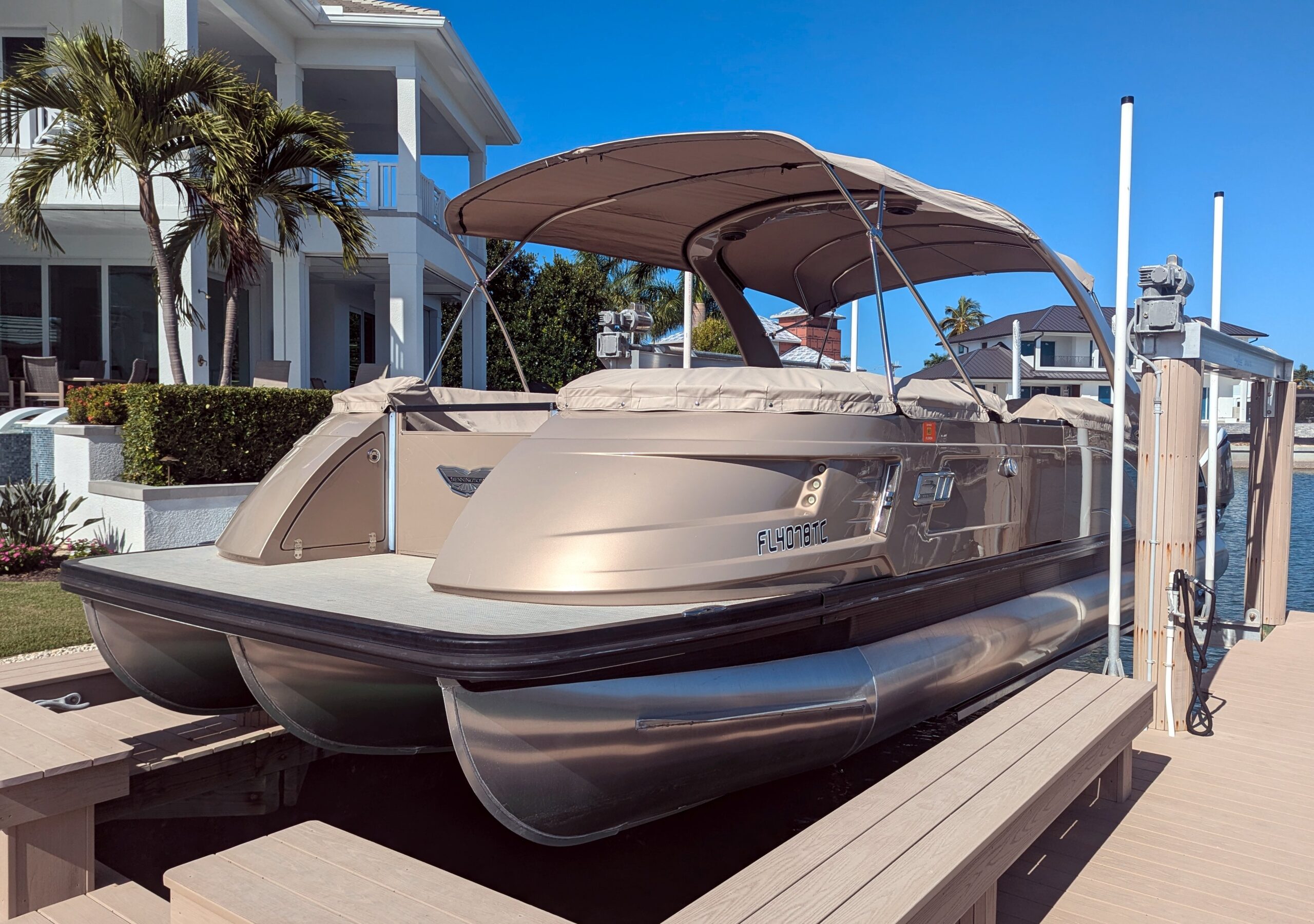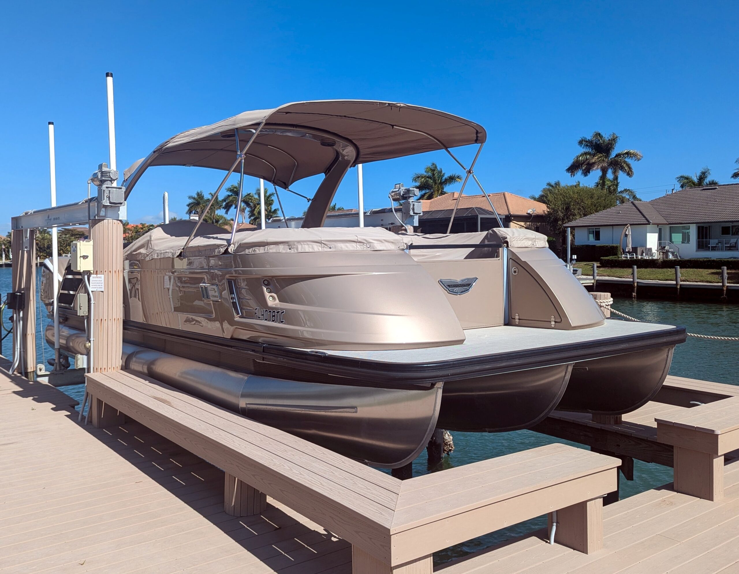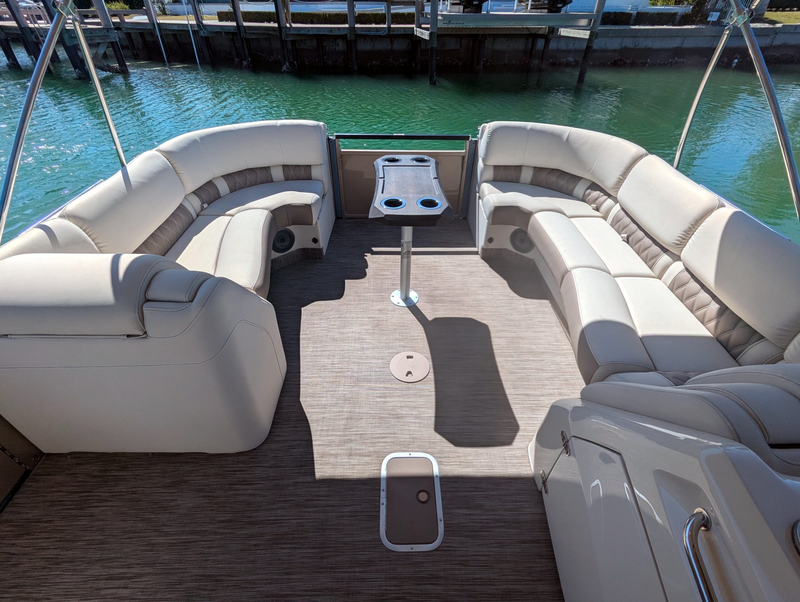 A double bimini arch provides excellent shade and completes the sleek, upscale profile of this boat. Every detail reflects Bennington’s top-tier craftsmanship and thoughtful design.