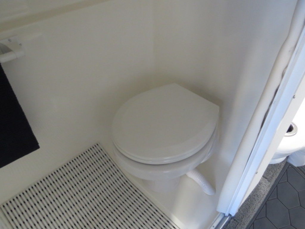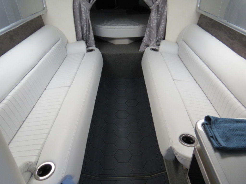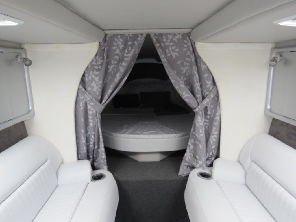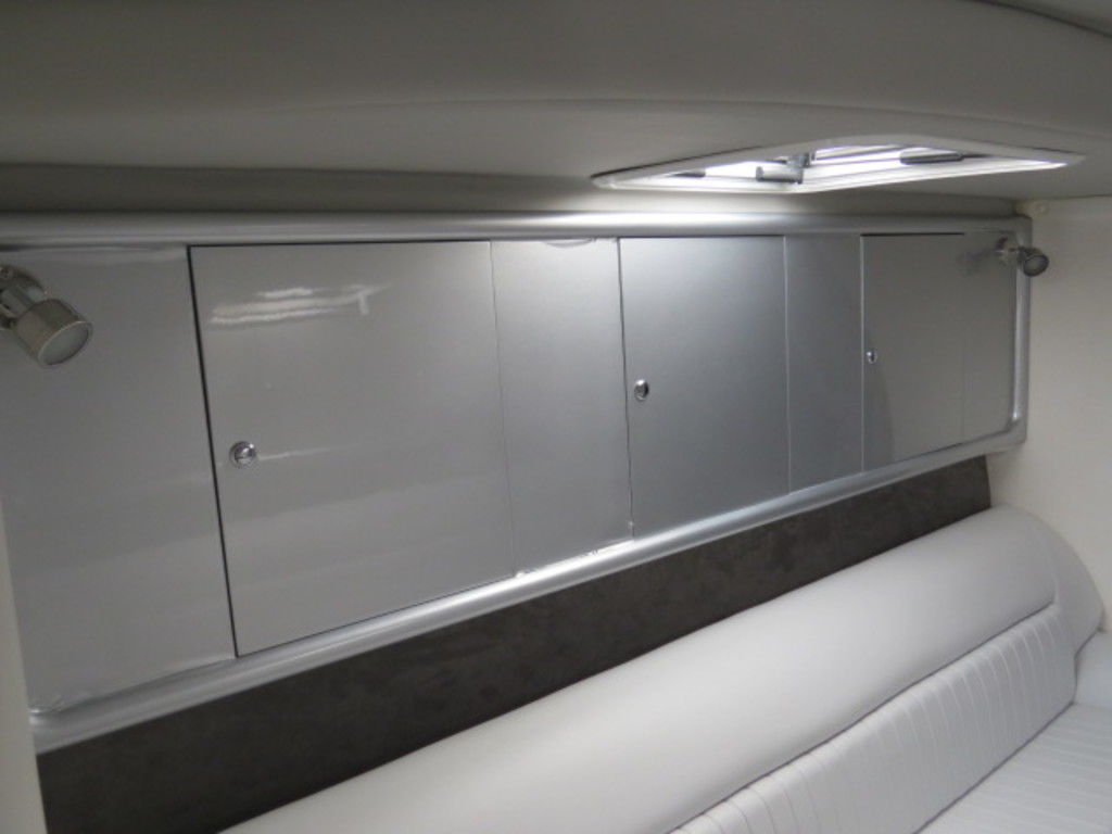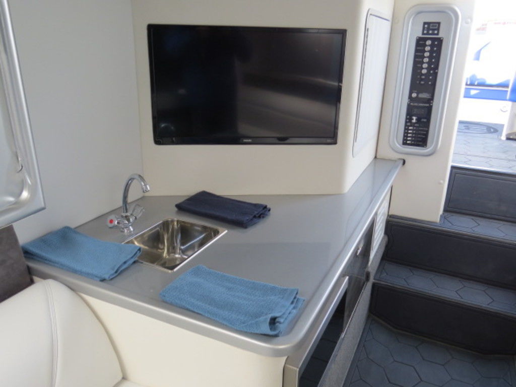 Less that 49 hours on this boat! True to Black thunder this 43 Raised Deck has huge head height in the cabin 6 FT-10 inches. This Price includes the custom Trailer!