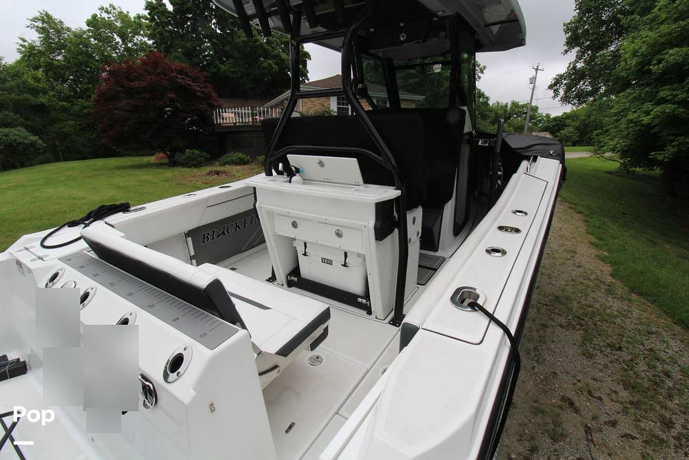 The hardtop center console has a bathroom below deck with a flush toilet and holding tank when nature calls.