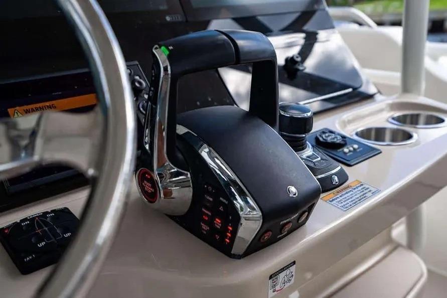 Power Triple Mercury 600 hp V12 outboards (1,800 hp total) · ~195–200 hrs · Joystick Piloting (JPO) · SmartCraft VesselView · fresh 200-hr service ($10k) · GEN 3 component upgrade on all three engines (1-yr parts warranty)