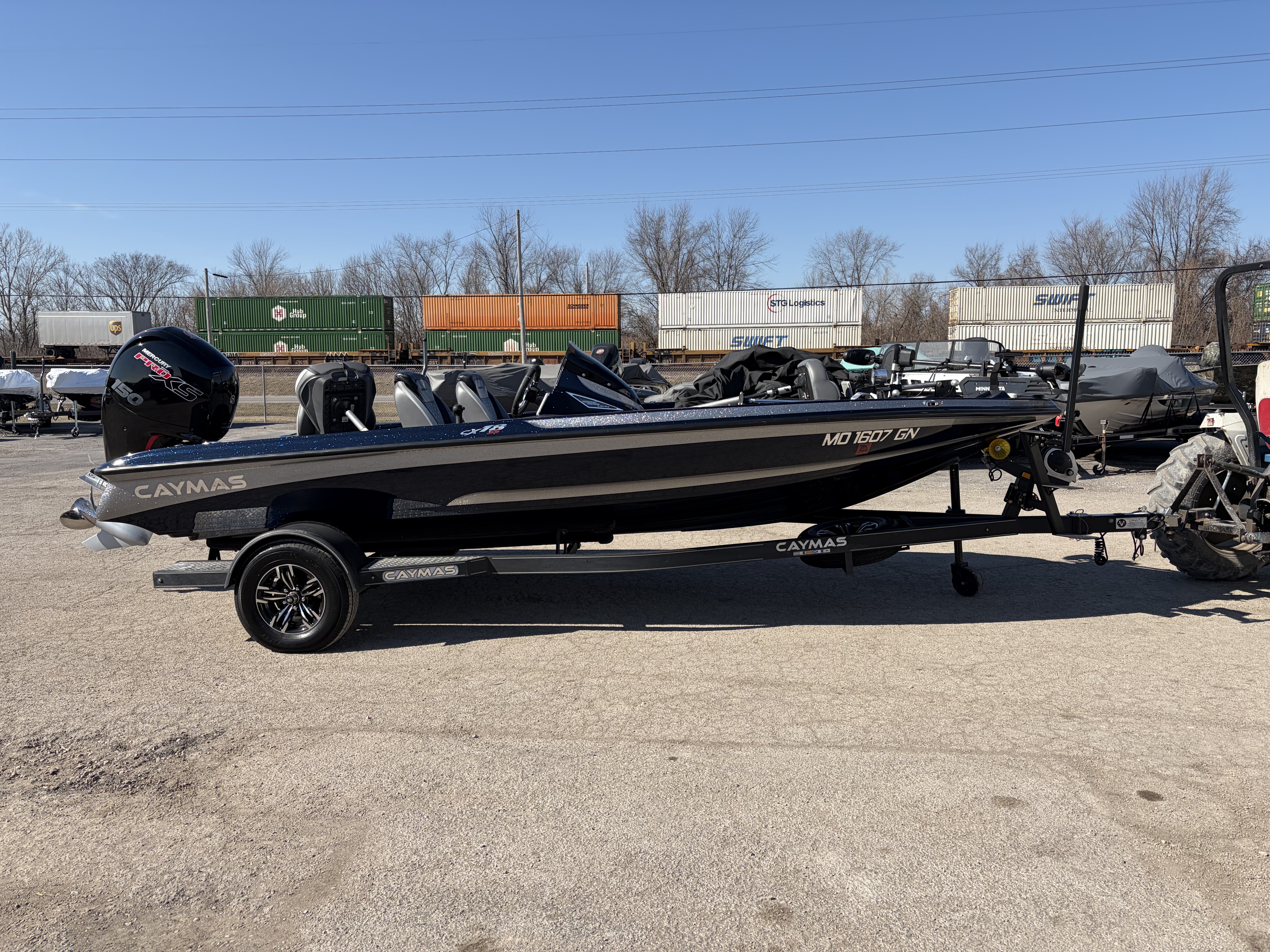 2022 Caymas CXSS, Mercury 150 proxs, single axle trailer, single console, 2 helix 7's console and bow, garmin 93sv on telescopic mount with livescope at bow, custom cover.