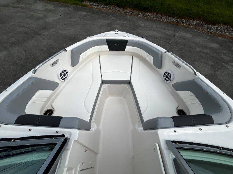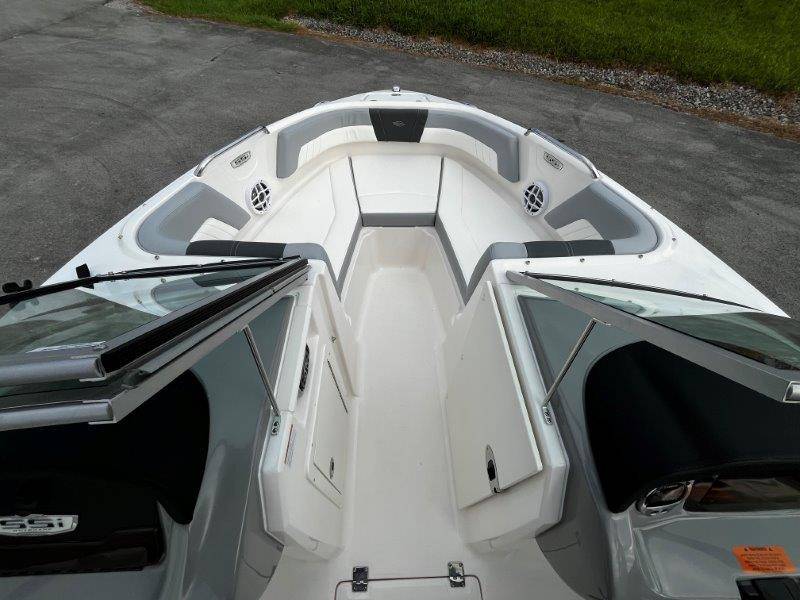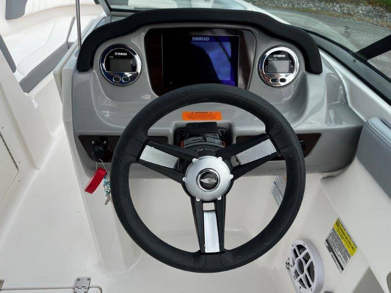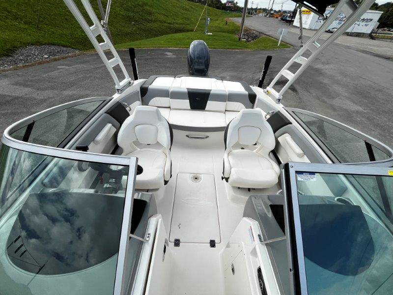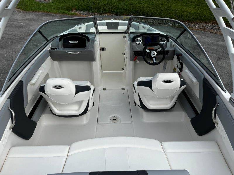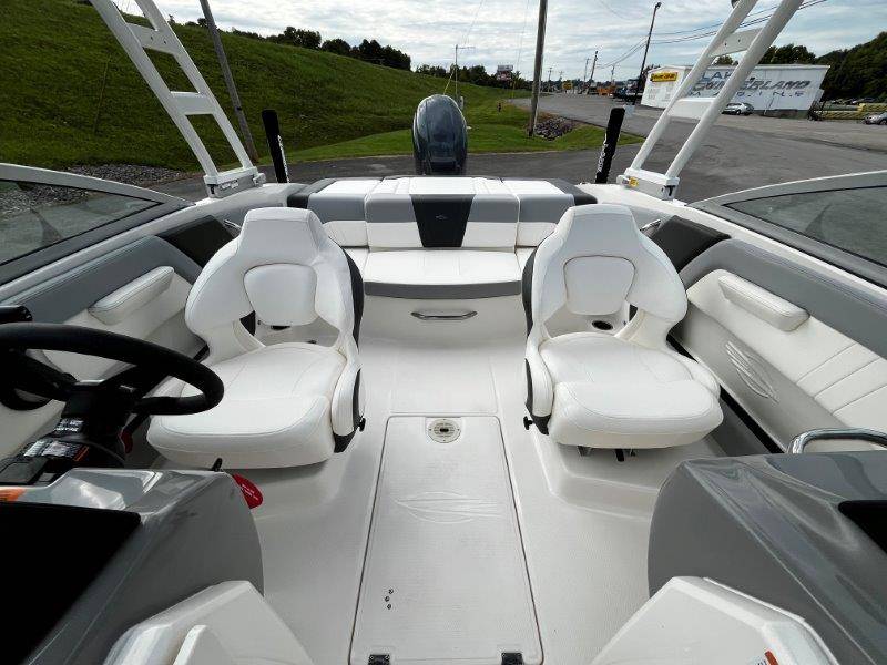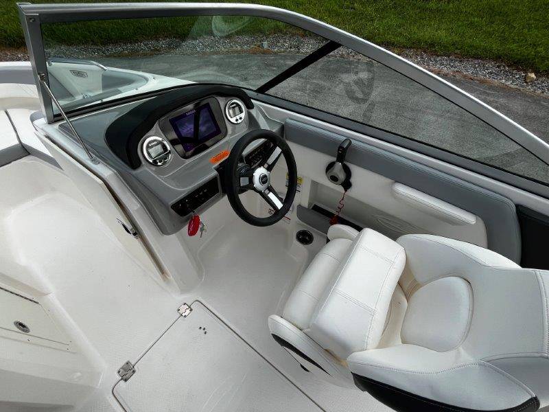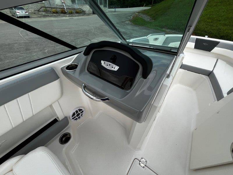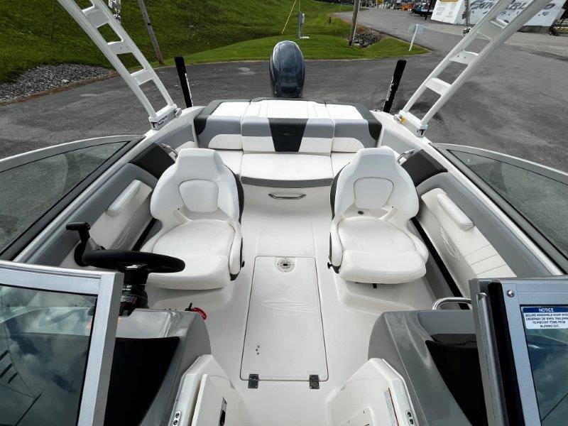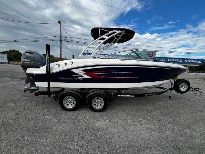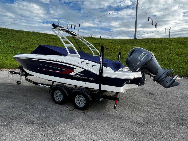 2022 Chaparral 21 SSi OB One of Chaparrals most popular models, offered for sale by original owner and in exceptional condition. Meticulous maintenance and all the preferred options on this boat make it the perfect opportunity to save over new without a noticeable tradeoff in condition. Yamaha Engine Bow Cushions with Storage Underneath Bow Ice Chest (Insulated) Bow Walk-Through Door Built in Cooler (70-Quart) Under Rear Bench Seat Cockpit Drainage System (CDS) Cockpit Layout: Two Bucket Seats (Slide and Swivel) with Logo Badging, U-Shaped Seating and Aft Hinged Sundeck with Walk-Thru and Lounge Position Cockpit LED Lighting Custom Molded Fiberglass Dash with Hand Stitched and Wrapped Visor Digital Hour Meter Digital Instrumentation 21.6 Hours