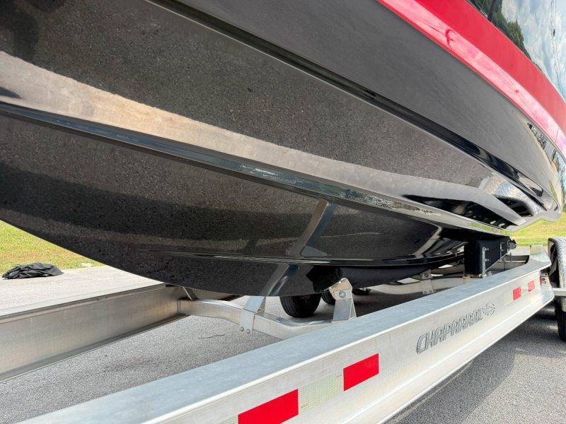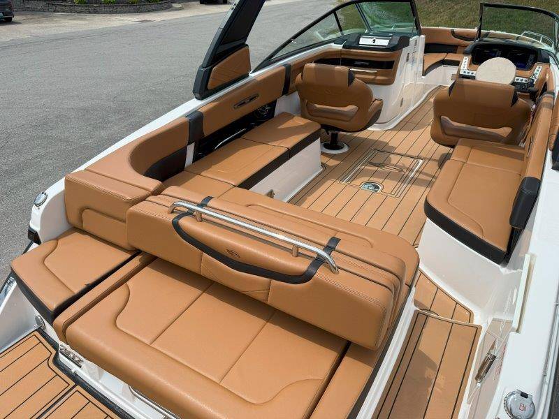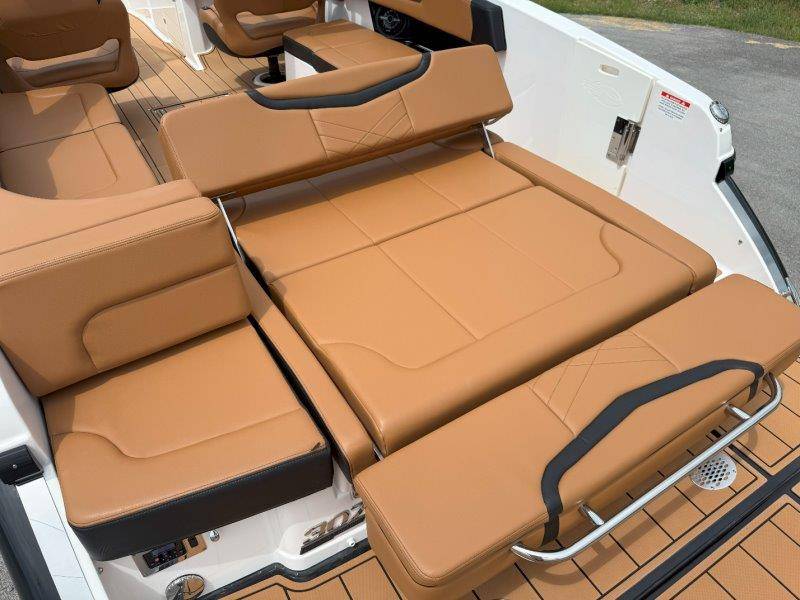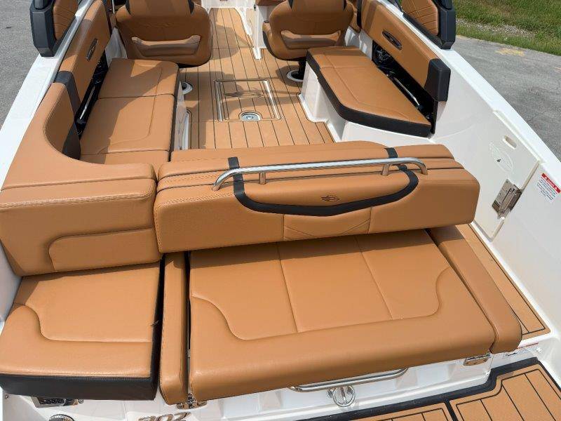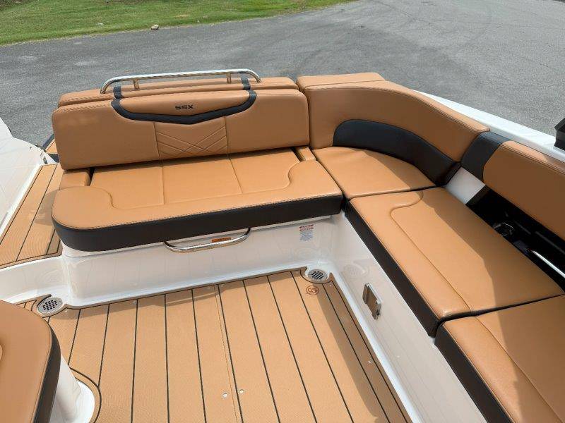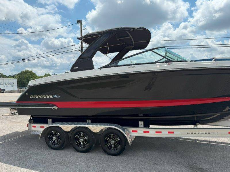 2022 Chaparral 307 SSX Key Specifications Length Overall (LOA): 30' 2" (9.19 m) Beam: 9' 0" (2.74 m) Dry Weight: 6,200 lbs (2,812 kg) Draft Up: 23.00" (58 cm) Fuel Capacity: 100 gal (379 L) Deadrise: 22° Max HP: 430 HP (321 kW) Passenger Capacity: Yacht Certified Chaparral Boats Engine & Performance Propulsion: Inboard-outboard, typically equipped with 350-400 HP+ engines. Maximum Power: 430 HP. Draft Down: 38". Features & Design Helm: Glass dash with dual touchscreen displays from Chaparral Boats (12-inch Simrad), NMEA compatibility, and power-assisted steering. Cockpit: Open design with L-shaped seating, insulated cooler, and a multi-position sun lounger. Storage: Extensive, including hinged storage in the bow and under seats. Comfort: Enclosed head compartment (standard), premium hand-stitched upholstery, and optional hardtop.