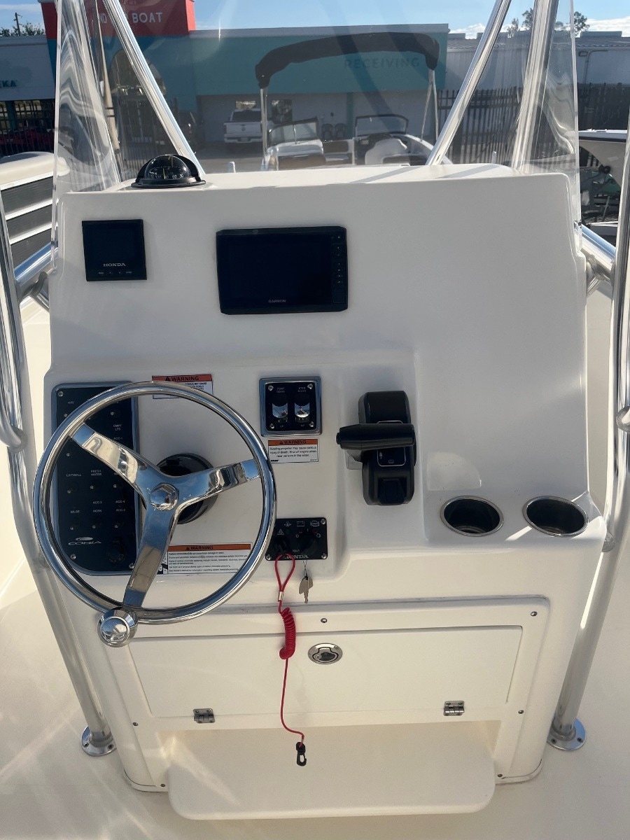 Tried and true, the venerable 237 CC gives you all you need in fishability and family cruising comfort. A stem to stern level deck, flush mount hardware, recessed bow rail, and hideaway aft bench seating provide a roomy and uncluttered fishing platform. Add to that standard features like an aerated 28 gallon livewell and two, in-deck 40 gallon fish boxes and this boat comes tournament ready. The 237 CC’s smart layout makes it just as comfortable as it is fishy. Whether sandbar hopping or going for a sunset cruise, a perfect blend of seating, storage space, and cockpit room makes for a relaxing and enjoyable experience. And like all Cobias, the 237 CC is built to ABYC standards, the highest in the marine industry, so you can be confident that there’s no safer or better built boat on the water.