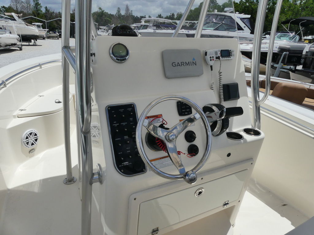 This 2022 Cobia 237CC is equipped with features that enhance both fishing performance and everyday usability. The center console layout offers 360-degree access around the boat, maximizing fishability. Multiple rod holders, spacious fish boxes, and a built-in livewell support productive fishing trips. The bow features cushioned seating that easily converts into a casting platform, while the cockpit includes additional seating for passengers. The helm is outfitted with modern electronics and intuitive controls for confident navigation. Additional highlights often include a T-top for shade, ample storage compartments, a swim platform for easy water access, and durable construction designed to withstand Florida’s marine environment—making it perfect for both fishing and family outings.