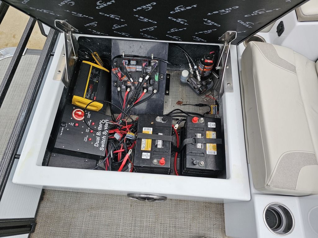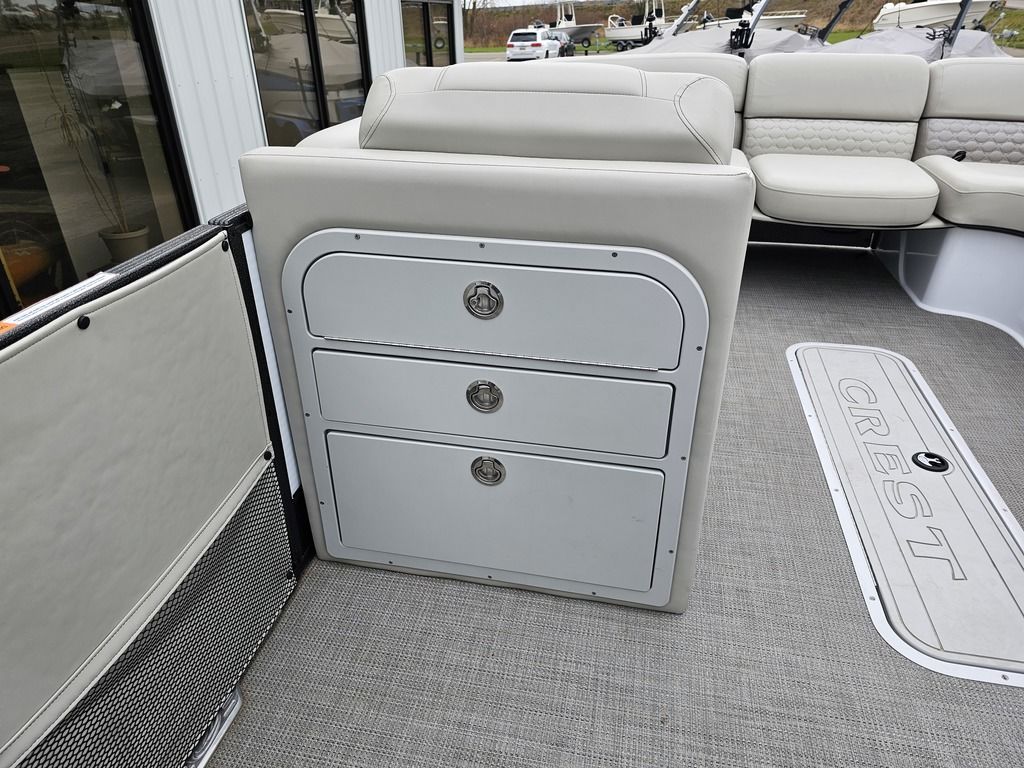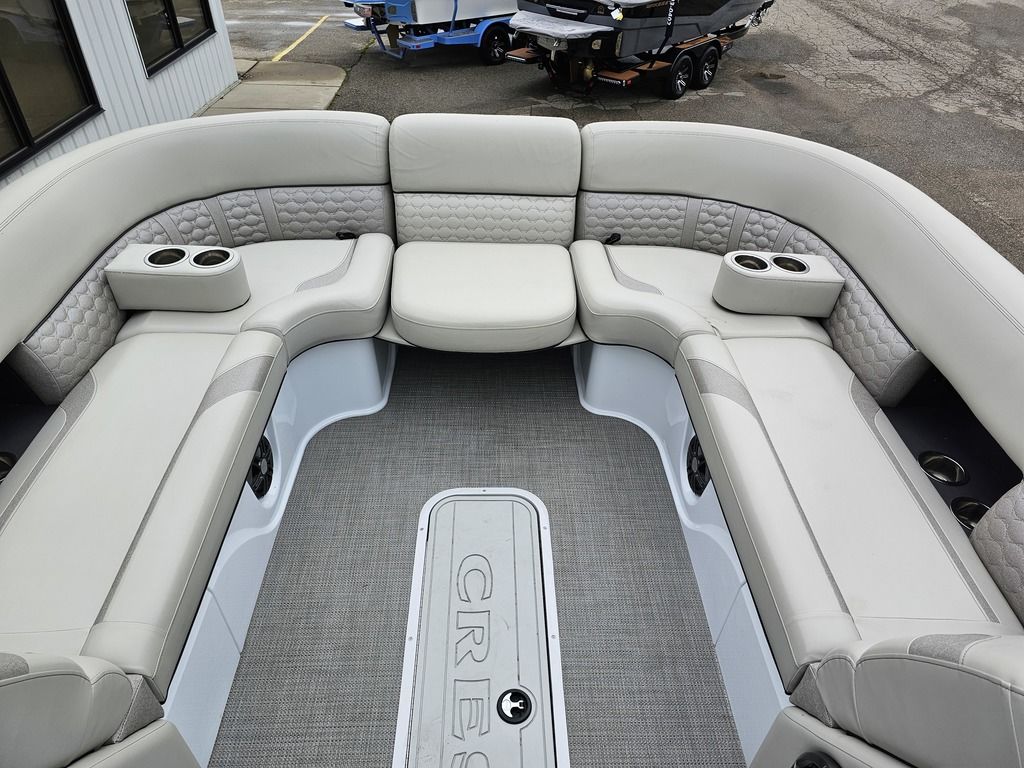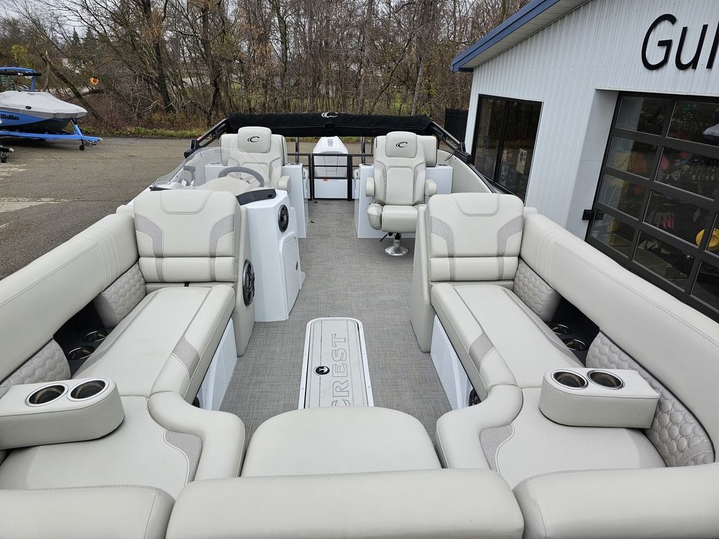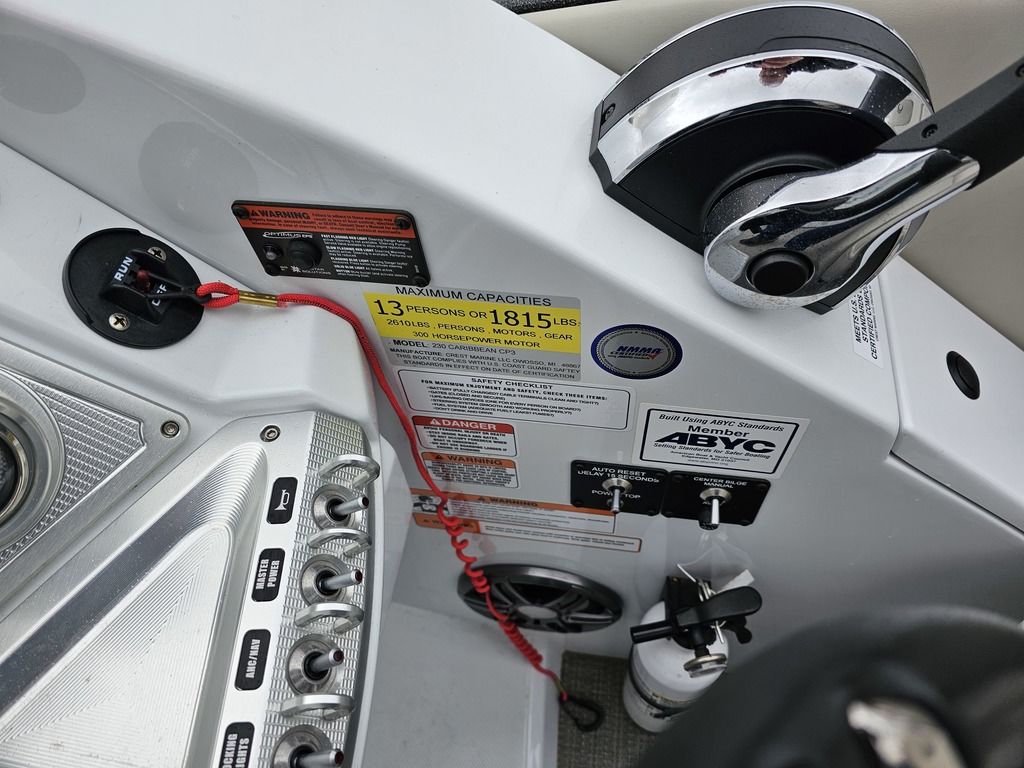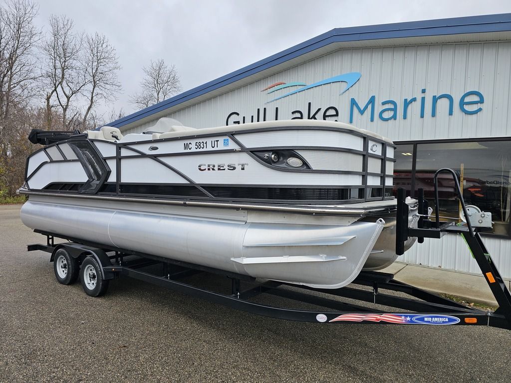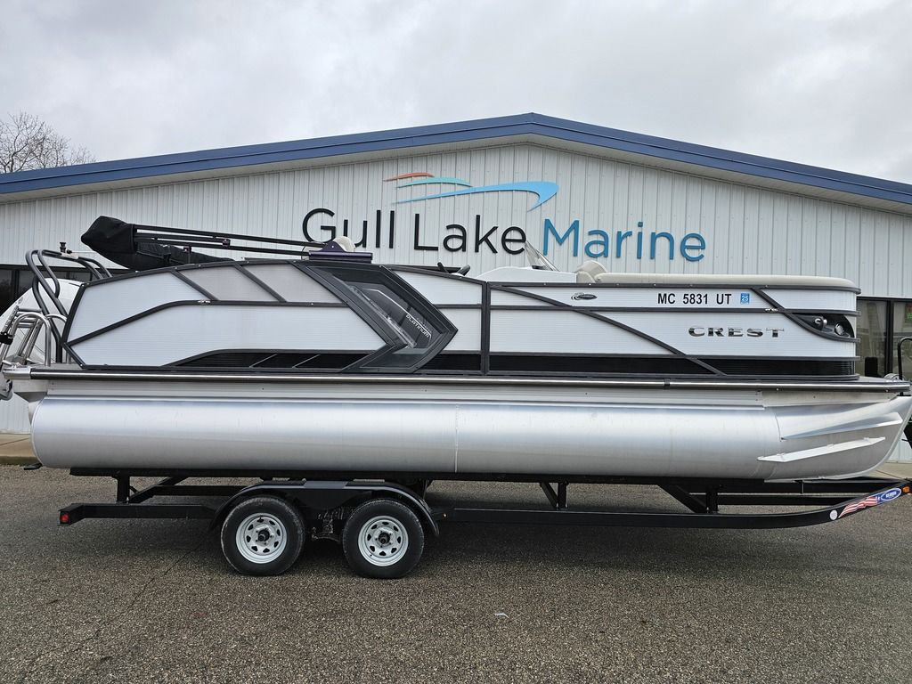 In stock and ready for a new owner. This beautiful 2022 Crest Caribbean Platinum 230 SLRC is the epitome of elegance and beauty. Featuring fiberglass seat bases with build in insulated coolers, a billeted dash, durable hammer finished powder coating, and 29" highback captain's chairs, you will be blown away by this Michigan made boat.Powered by a Mercury 300 with only 63 hours on it, enjoy simple cruising or any of your favorite water sports! TRAILER IS INCLUDED!Major Options Include:Electric Power Steering3 Drawer Storage UnitRemovable Bow Filler CushionPower BiminiInterior and Exterior Lighting PackagesPremium Audio PackageStop by our Coopersville location and check this one out for yourself! Winter storage is already paid for.