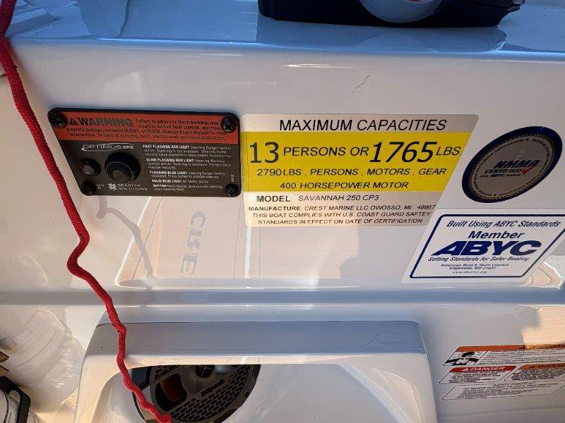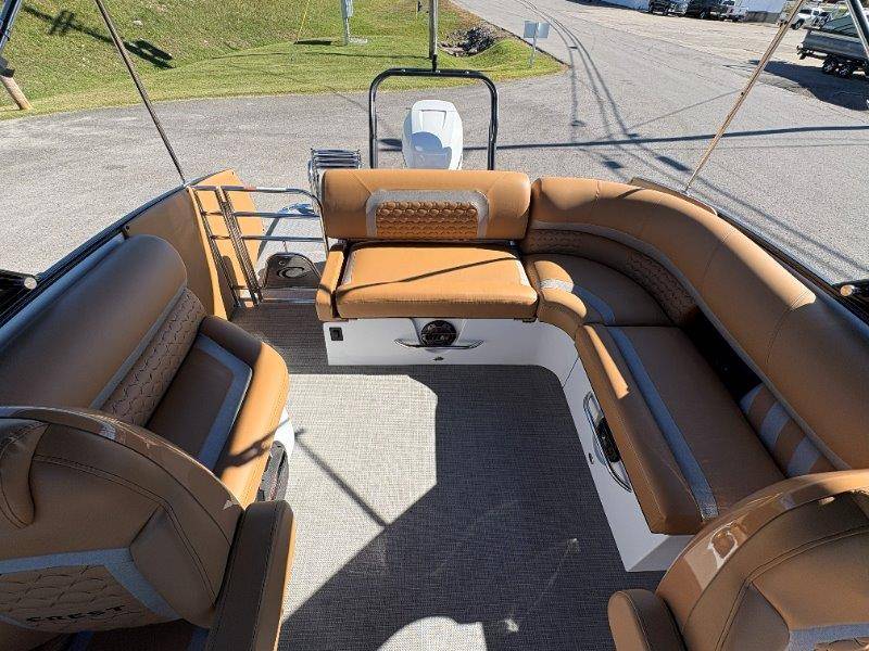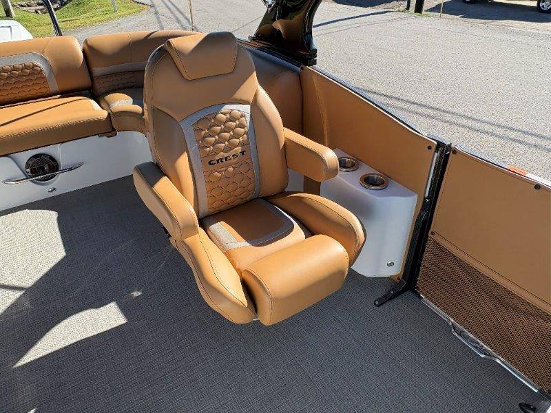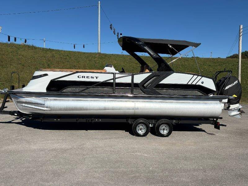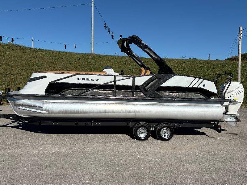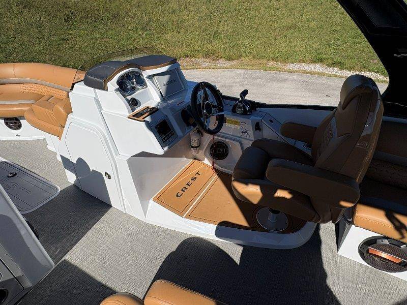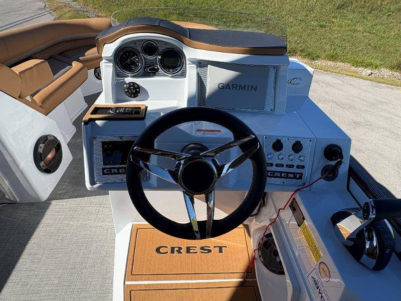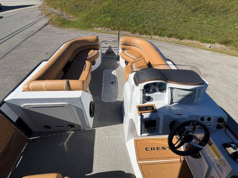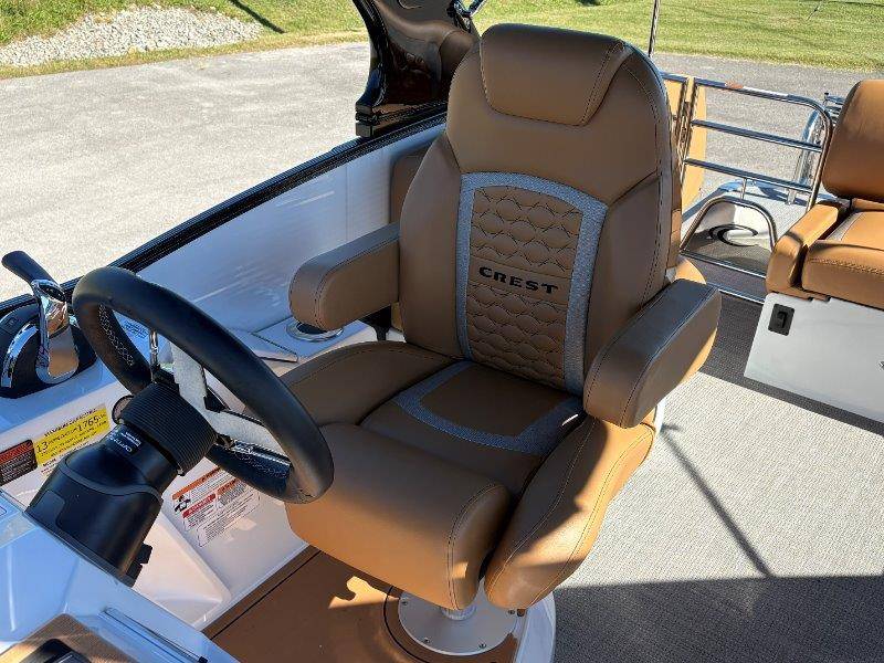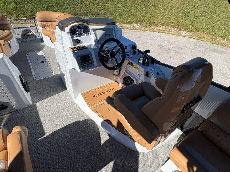 2022 Crest Savannah SLSC Standard Features .08 Thick Aluminum Pontoon Tubes .100 Thick Aluminum M Brackets .25 Thick Extruded Aluminum 4- Sided Box Beam Channel Cross members with Variable 15" on Center Spacing Boarding Ladder- 4-Step- Stainless Steel, Telescoping Bow and Stern Fiberglass with Storage Compartments CP3 Performance Round Tubes Ski Tow Bar Dual Battery Switch Battery Charger Fully Sealed Structural Bulkheads with 4 Chambers Gate Stops Nose Cone Polished Aluminum Stern Corner Casting with Stainless Steel Cleats Ribbed Aluminum Under Deck Skirting SeaCure Deck Construction Thru Bolted and Tech-Screwed SeaCure Luxury Deck Construction Stainless Steel Rub Rail Insert High-Back Reclining, Swiveling, and Sliding Helm Chair with Flip-Up Bolster Aluminum Billet Dash and Switch Panel Captain's Cooled Cup Holder Fiberglass Helm with Windscreen/Windshield Gauge Panel- Fuel, Tachometer, Trim and Volt GPS/Sonar/Fish Finder- GARMIN Steering- Sea Star EPS Tilt Steering Wheel Digital Switching Changing Room with Privacy Curtain and Frame Cooler Bag, Soft-Sided Crest Logo'd Fiberglass Sear Base Construction Floor Covering- Luxury Poly Vinyl or SeaGrass Ultra Soft Luxury Leather or Sport Upholstery Table USCG Compliant Stainless Steel Hand Holds RGB Cupholders Power Electric Bimini Top Mooring Cover
