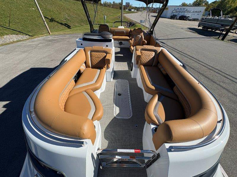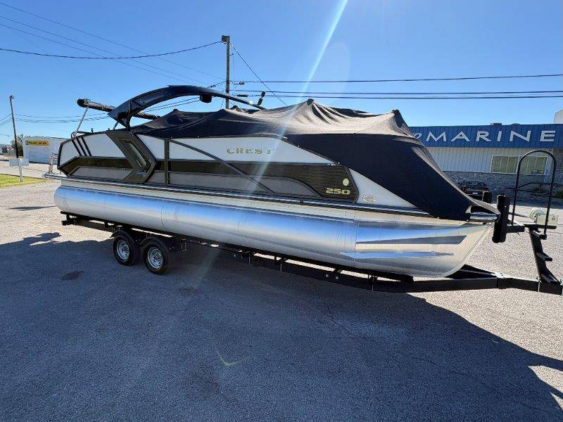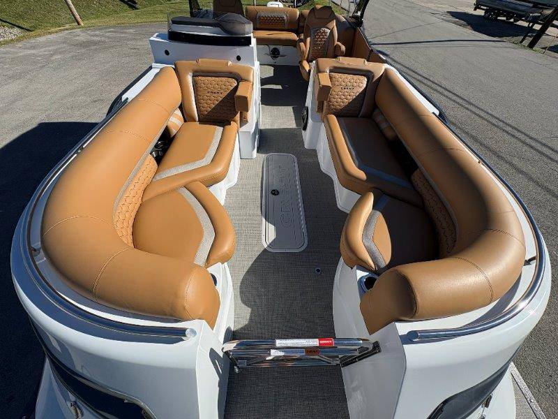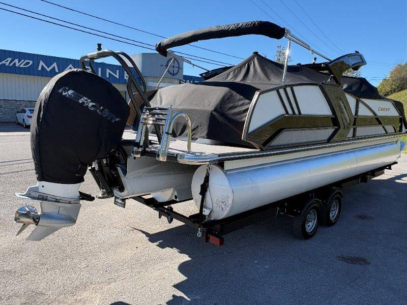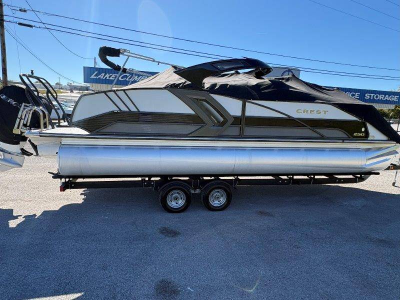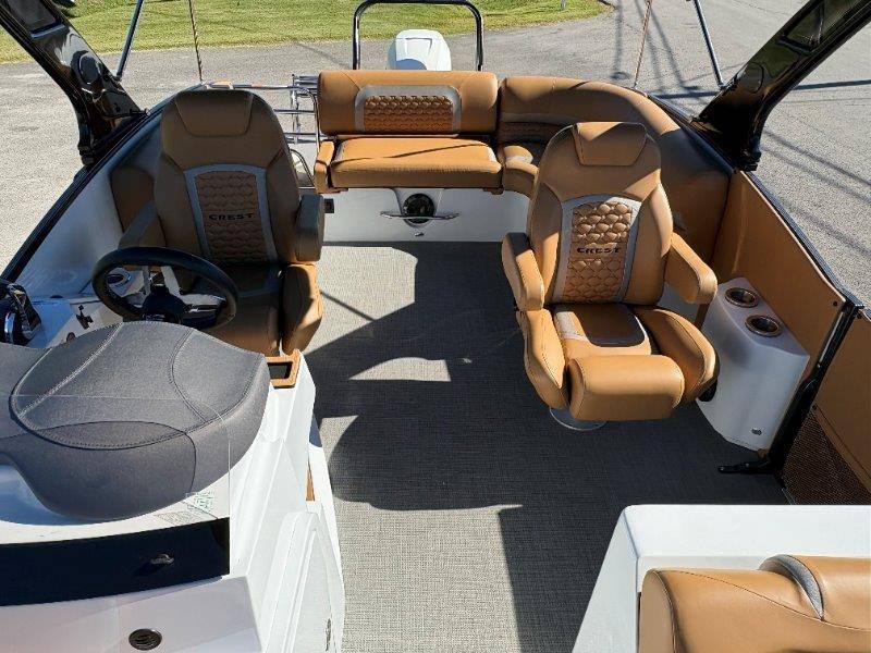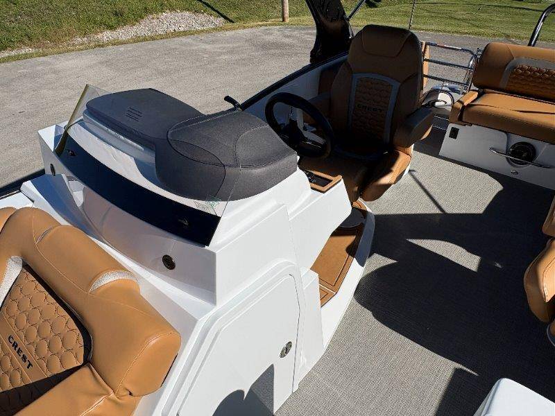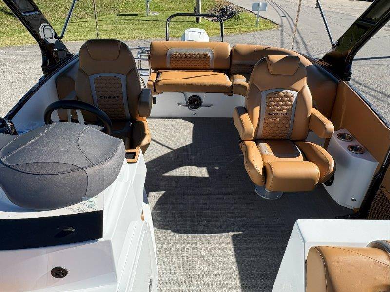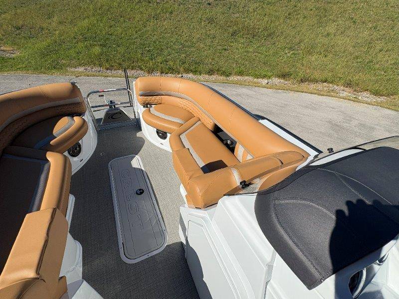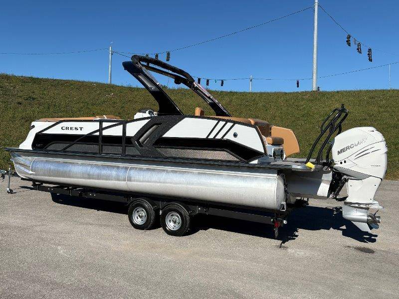 2022 Crest Savannah SLSC Standard Features .08 Thick Aluminum Pontoon Tubes .100 Thick Aluminum M Brackets .25 Thick Extruded Aluminum 4- Sided Box Beam Channel Cross members with Variable 15" on Center Spacing Boarding Ladder- 4-Step- Stainless Steel, Telescoping Bow and Stern Fiberglass with Storage Compartments CP3 Performance Round Tubes Ski Tow Bar Dual Battery Switch Battery Charger Fully Sealed Structural Bulkheads with 4 Chambers Gate Stops Nose Cone Polished Aluminum Stern Corner Casting with Stainless Steel Cleats Ribbed Aluminum Under Deck Skirting SeaCure Deck Construction Thru Bolted and Tech-Screwed SeaCure Luxury Deck Construction Stainless Steel Rub Rail Insert High-Back Reclining, Swiveling, and Sliding Helm Chair with Flip-Up Bolster Aluminum Billet Dash and Switch Panel Captain's Cooled Cup Holder Fiberglass Helm with Windscreen/Windshield Gauge Panel- Fuel, Tachometer, Trim and Volt GPS/Sonar/Fish Finder- GARMIN Steering- Sea Star EPS Tilt Steering Wheel Digital Switching Changing Room with Privacy Curtain and Frame Cooler Bag, Soft-Sided Crest Logo'd Fiberglass Sear Base Construction Floor Covering- Luxury Poly Vinyl or SeaGrass Ultra Soft Luxury Leather or Sport Upholstery Table USCG Compliant Stainless Steel Hand Holds RGB Cupholders Power Electric Bimini Top Mooring Cover