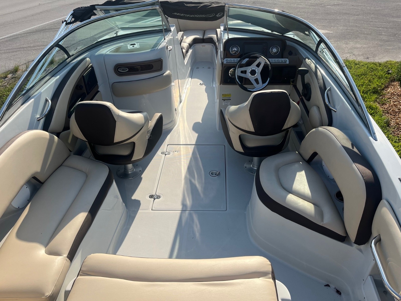 The Crownline 260 XSS outboard model is 25′ 3″ in length, with a 102″ beam and plenty of room for family and friends to enjoy beautiful, fun-filled days on the water. This boat is an attention-grabber and loaded with impressive standard features including an electric fold-down arch, beautifully appointed head compartment, massive amounts of storage and a Garmin 7″ GPS twin touchscreen display.