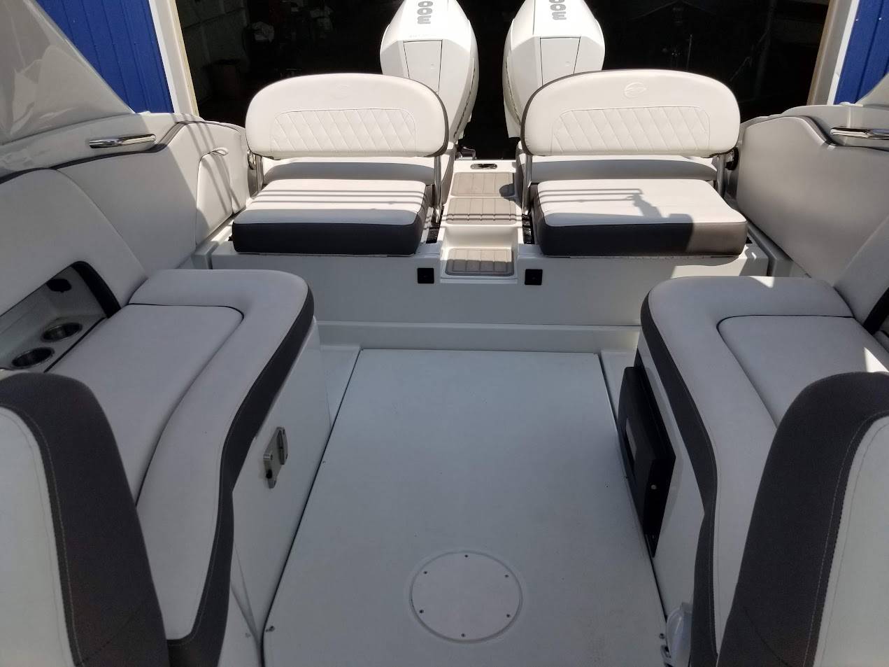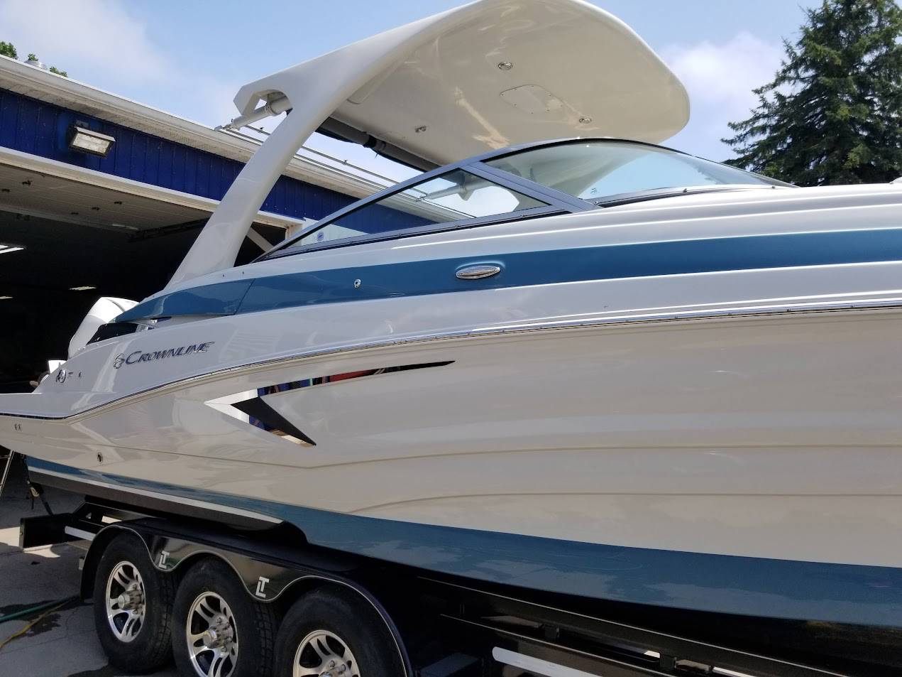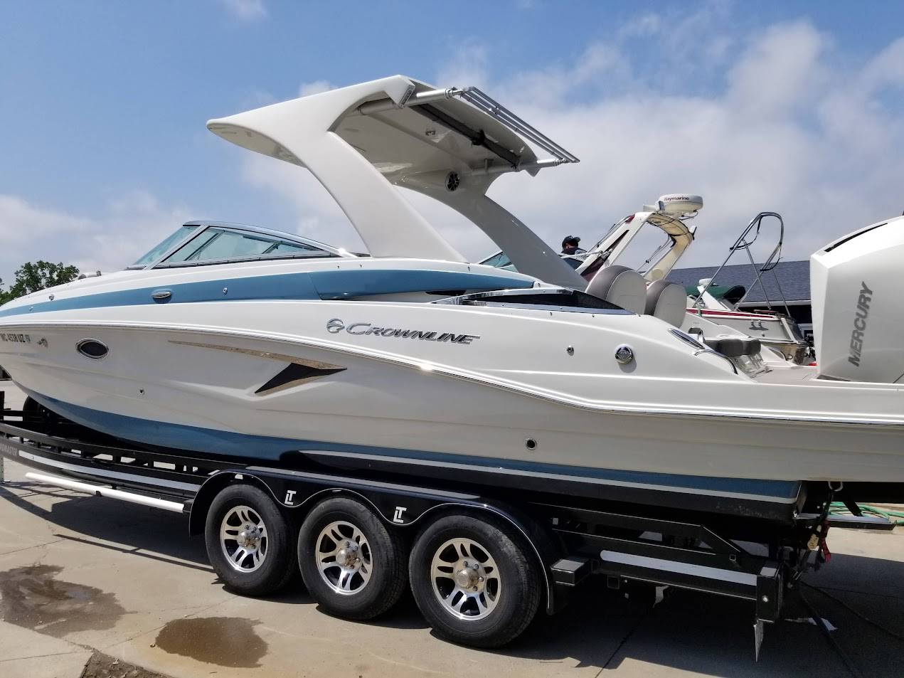 2022 Crownline E305 XS with Twin Engine Mercury 300XL DTS 4-strokes*Trailer not included in price* Delivery and new trailers are available at an additional priceFactory installed options on the boat include:Additional drive stripeDeluxe color-matched upholsteryMercury DTS controlsFore & Aft projecting docking lightsElectric engine hatchHard-top with SureShadeEnclosed head with Vessel sink, electric flush head with holding tank, granite counter top, full cabinetry and opening portlightUnderwater transom lightingRefrigeratorStainless steel ski tow pylonWet Sounds Premium Audio package with LCD transom remoteAdditional amp, subwoofer with all cockpit speakers amplifiedJOYSTICK STEERING!Trim Tabs with indicatorsAuto-Glide boat leveling system for trim tabsWindlass system with rope and chainFender clip systemThis is a must see boat!!Call 800-875-2620 for additional information or to schedule an appointment to view the boat today!