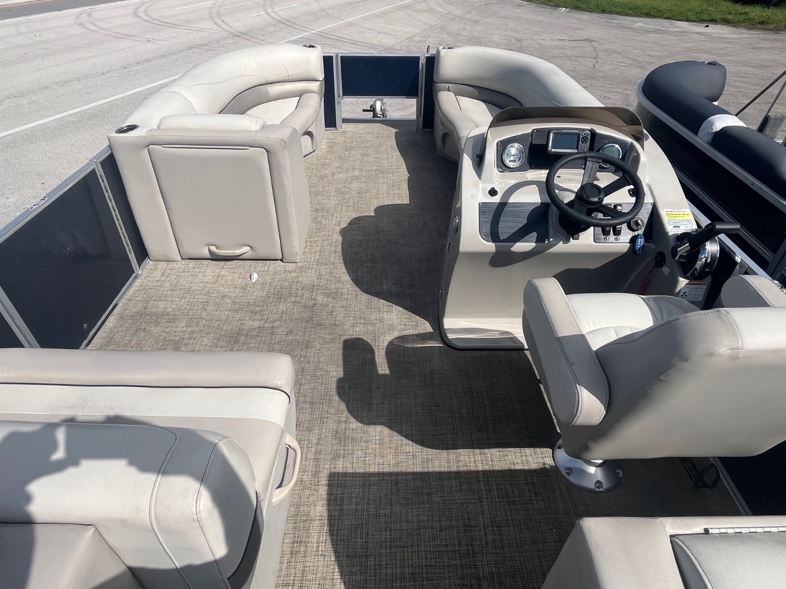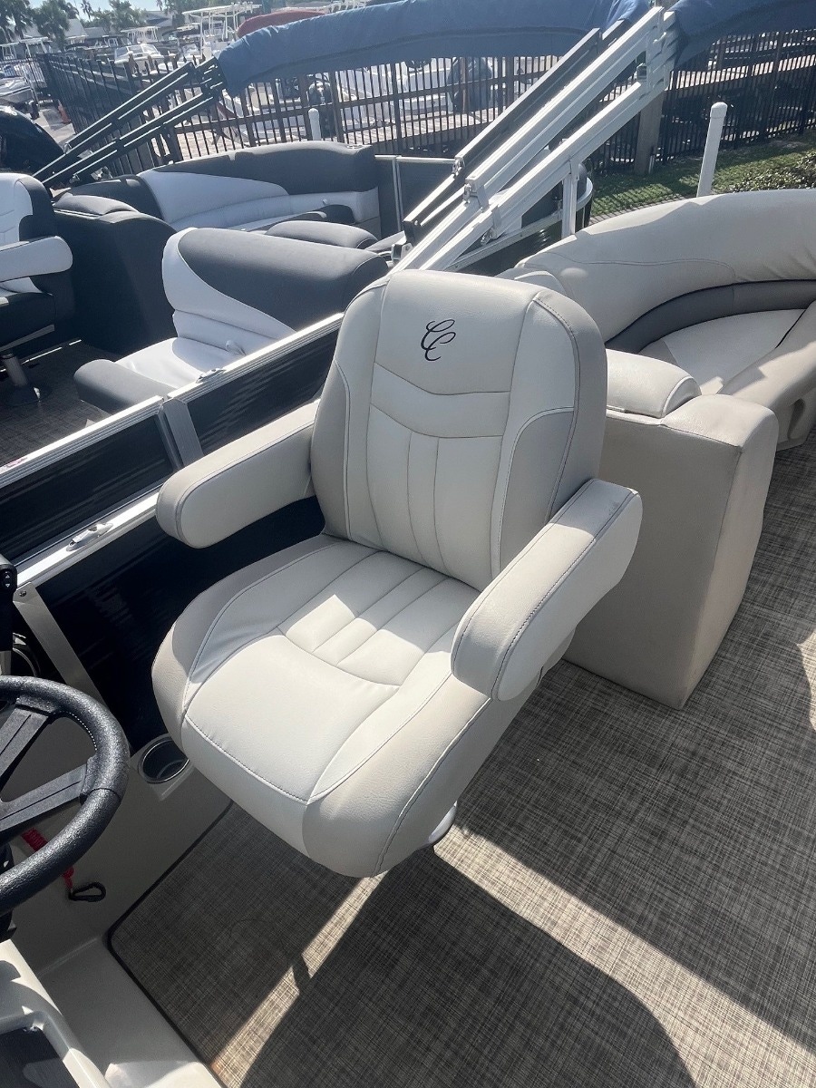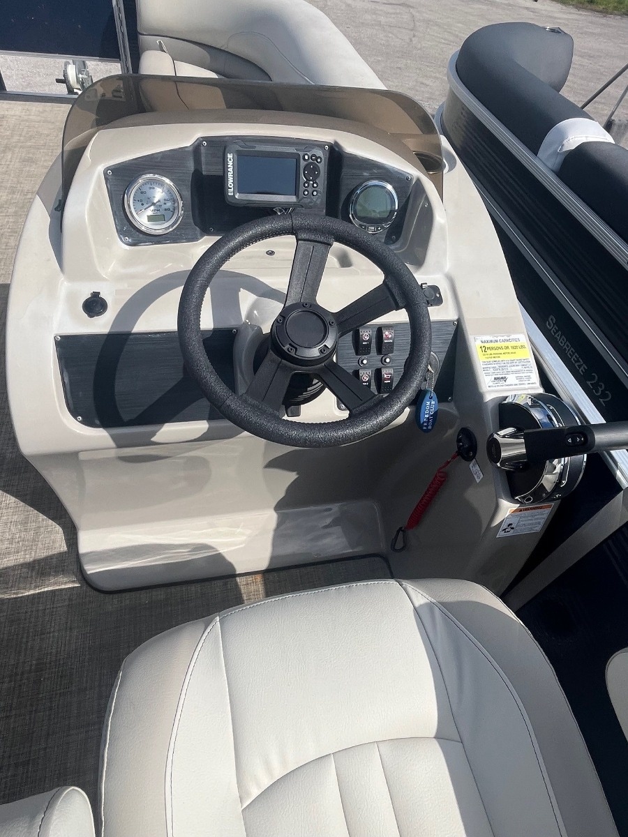 Confidence comes from intuitive ease of use, reliability and safety. The Seabreeze 232 packs those features and more on a 23-foot pontoon platform. The single-piece fiberglass helm is engineered to host all of your controls, gauges and accessory switches in a logical manner, for absolute control. The bell-crank hinges on the corner lounges allow your seat pad to conveniently fold out of the way and stay in place to access storage compartments. Reliability is improved with the use of high-quality materials and systems designed for a marine environment. Such can be found in our use of full-length extruded pontoon riser brackets that reduce torque and twist from the engine and wave action; or our color-matched roto-cast plastic seat bases which are channeled to direct water out to keep your gear drier. Safety is extremely important and the primary reason why you'll find tall fence rails and full-length gate-stops used on Cypress Cay boats. We are confident that you will be at ease with your choice of Cypress Cay.