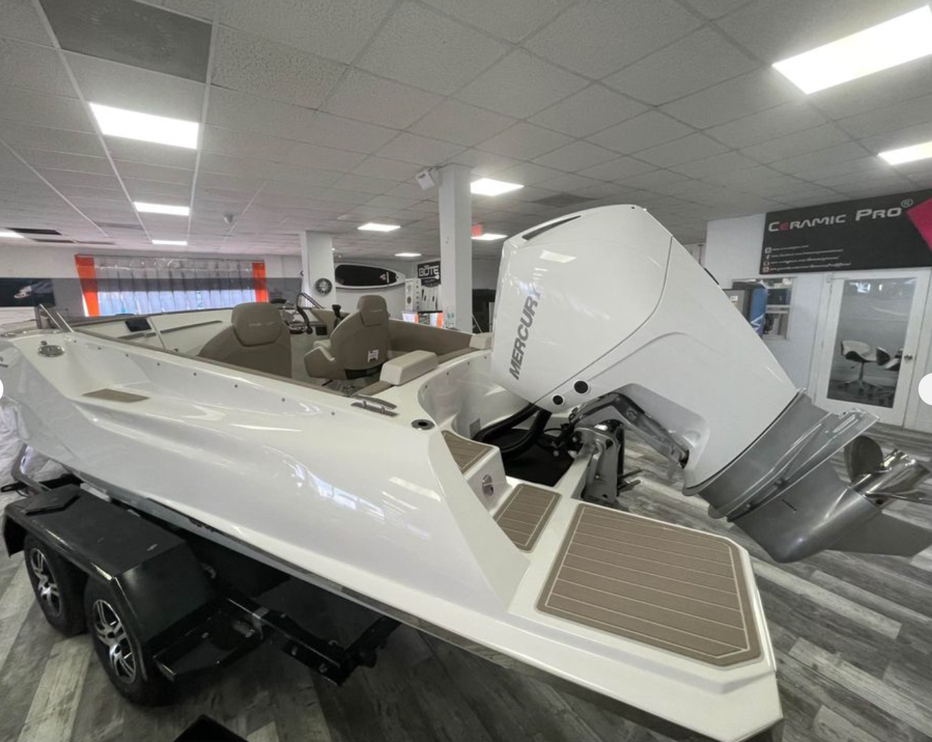 This D-BOAT Diamond 550 is Brand new in excellent condition and comes powered by a Mercury 200XL with full warranty and 0 Hours. If you’re looking for a sexy boat that is ideal for entertaining and relaxing cruises around the coastal waterways, look no further. These boats are top notch from the construction process, fit and finish, as well as the luxurious aspect that they offer.