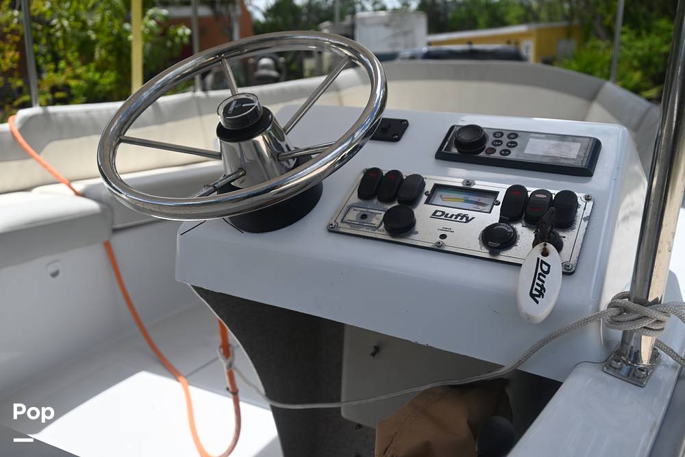 This 2022 Duffy Bayshore 18 electric boat is fully equipped and ready for peaceful cruising with family and friends! She is powered by a 48 volt DC electric motor and and controlled by the patented Duffy Power Rudder System. The Power Rudder directs thrust as you turn the wheel, allowing you to put the boat wherever you want. In a tight spot? No problem. She will spin on a dime!