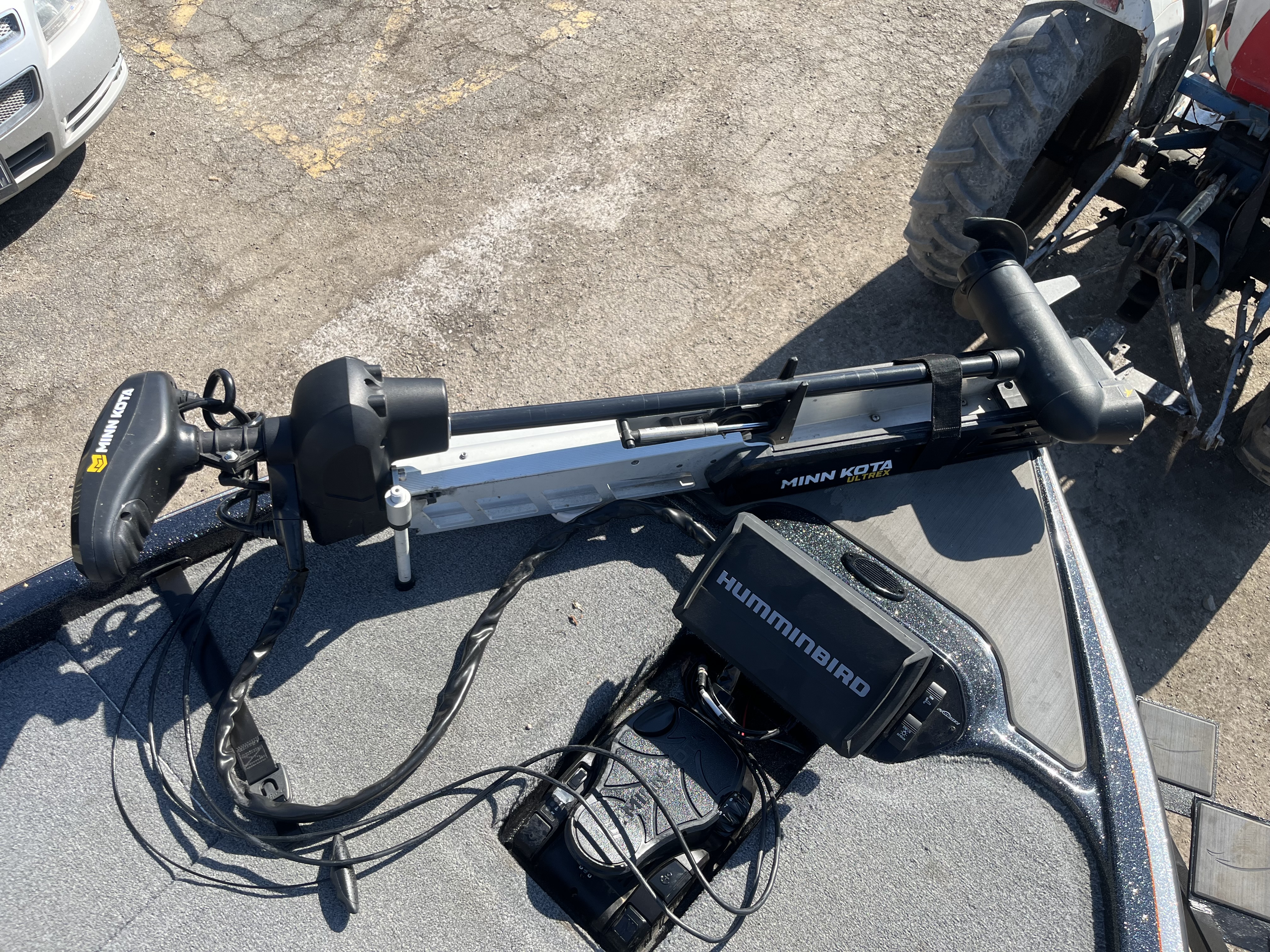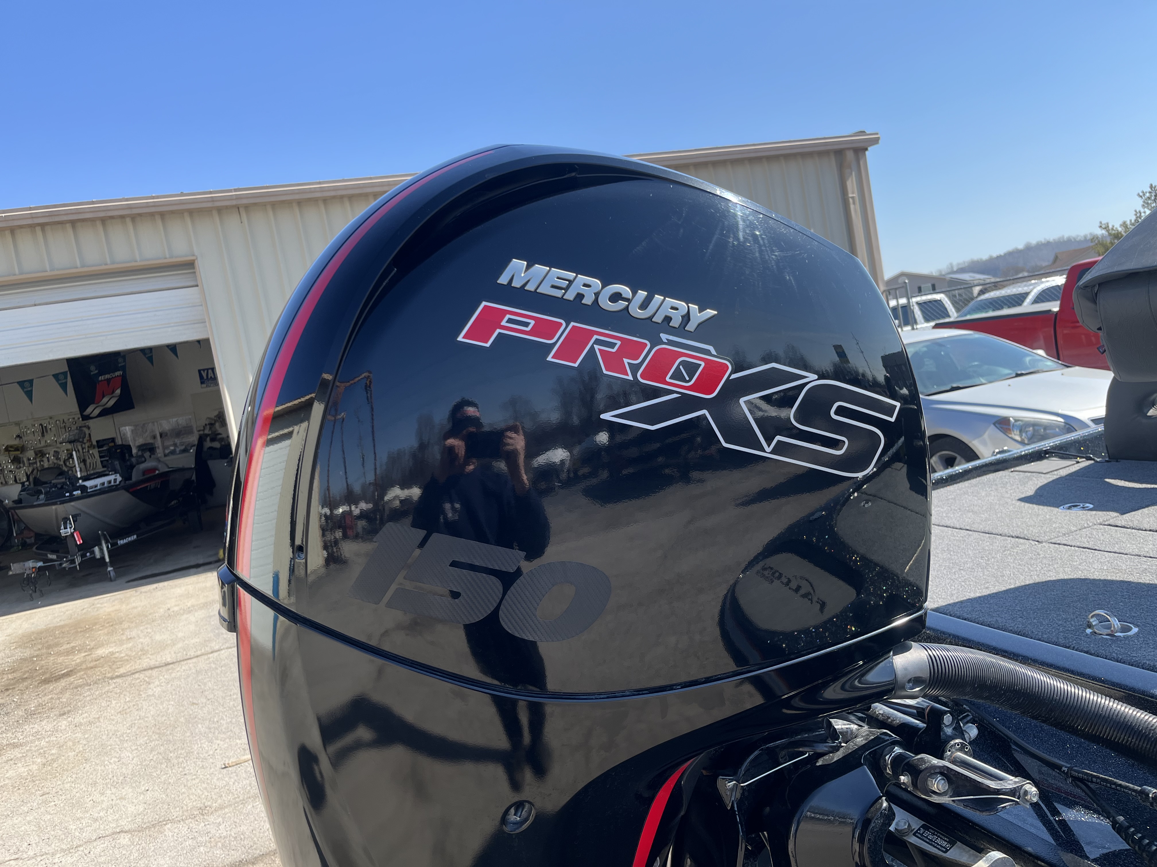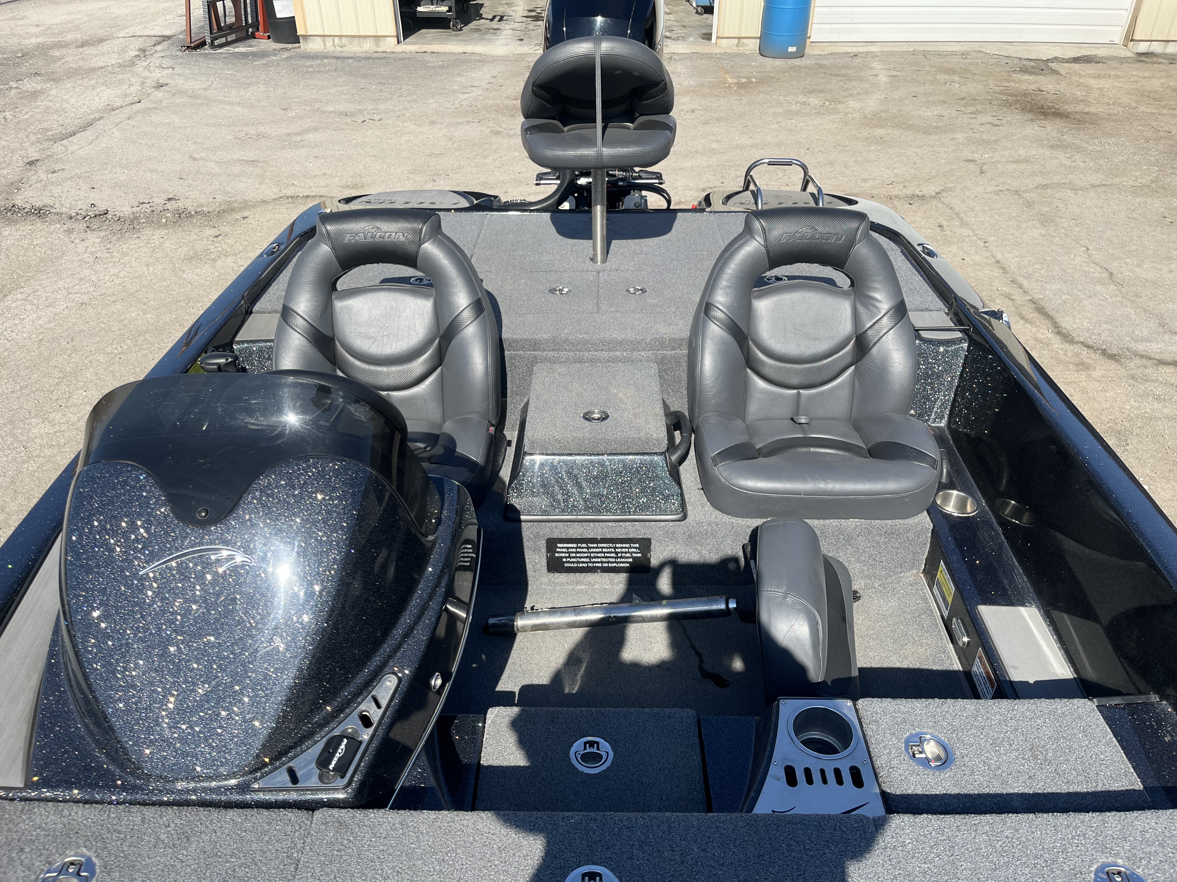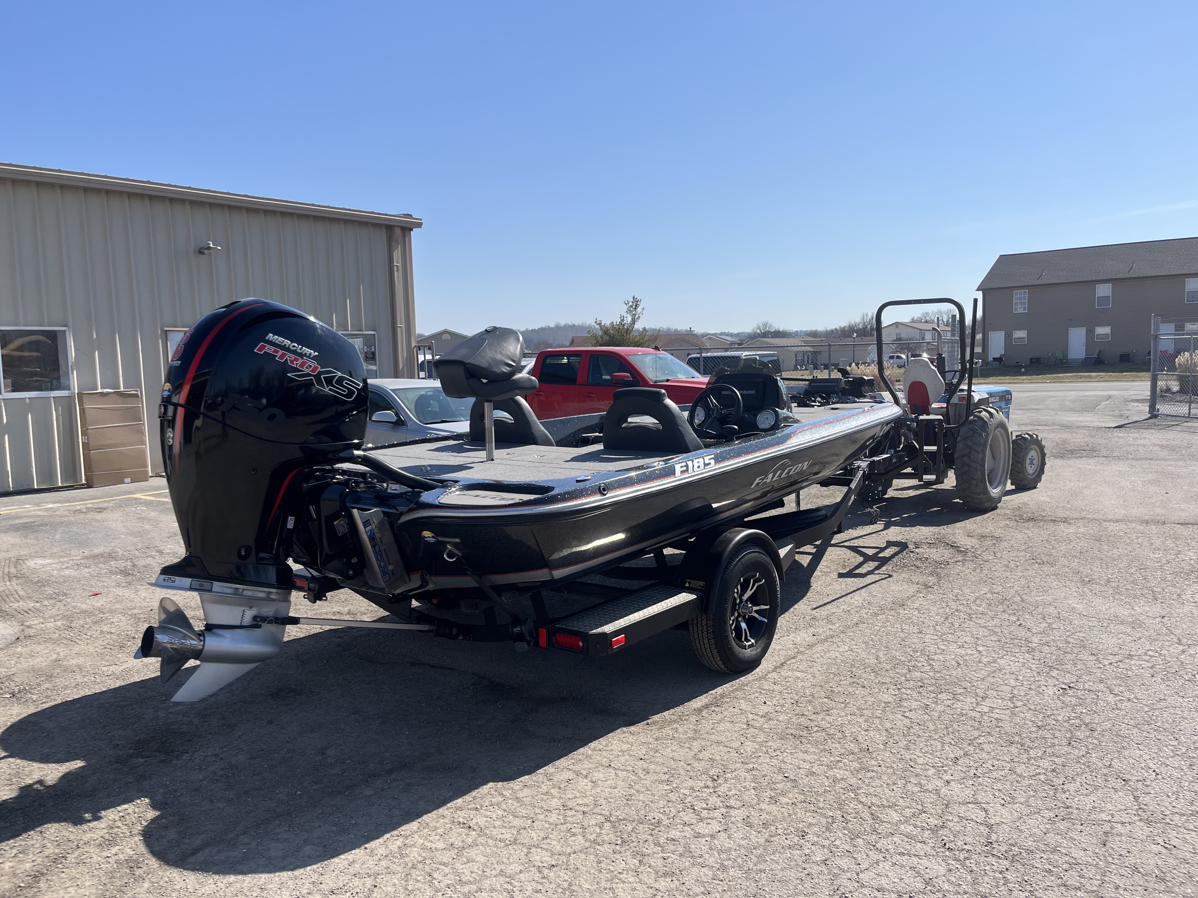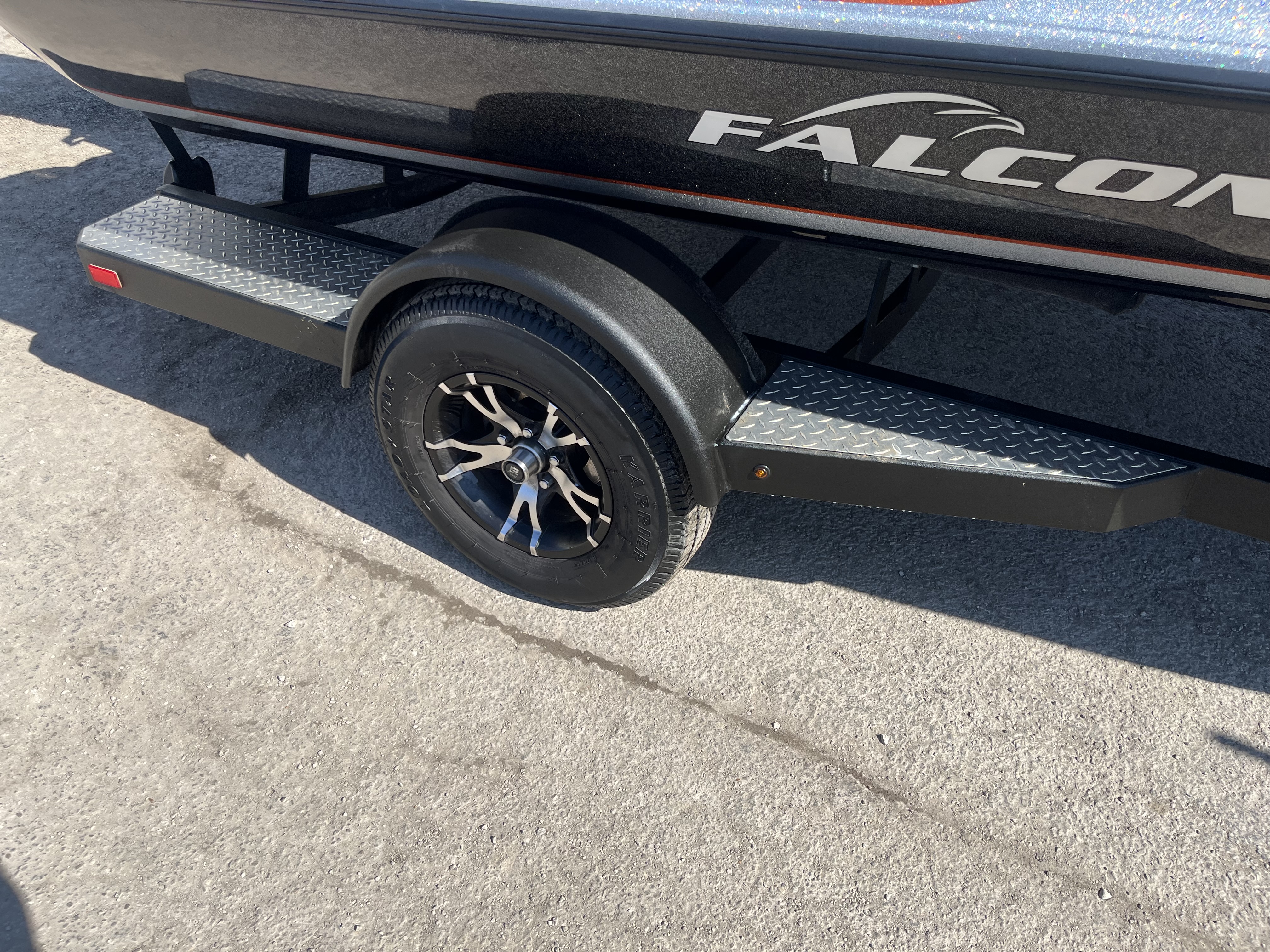 2022 Falcon F185, powered by a Mercury 150hp ProXS 4S, Minnkota Ultrex trolling motor, Humminbird Helix 9 at bow, Humminbird Helix 9 at console, single console, boarding ladder, hot foot, pro trim, boarding ladder on trailer, single axle trailer. Cover