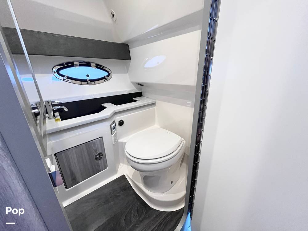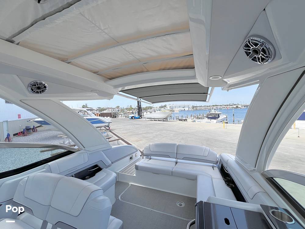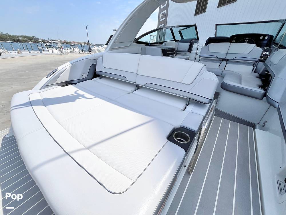 The 330 CBR is a large-format bowrider with overnighting accommodations. Stretch out in the luxurious cockpit lounge, rear-facing flip-seat, and forward seating. Guests will love the on-deck wet bar, refrigerator, hardtop with retractable sunroof. The power awning extends all the way to cover the aft sun pad, and the upgraded JL Audio sound system with sub is a favorite of everyone onboard.