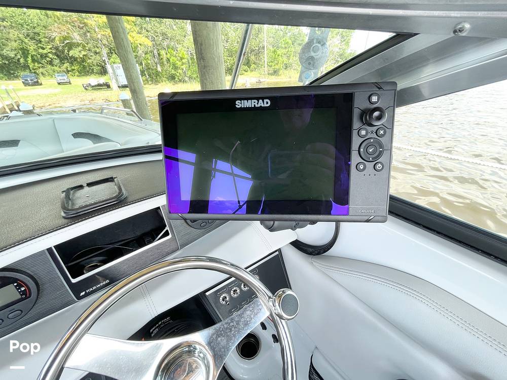 This boat has a Kicker Bluetooth-enabled sound system and the owner has upgraded the boat with a Simrad GPS fishfinder.