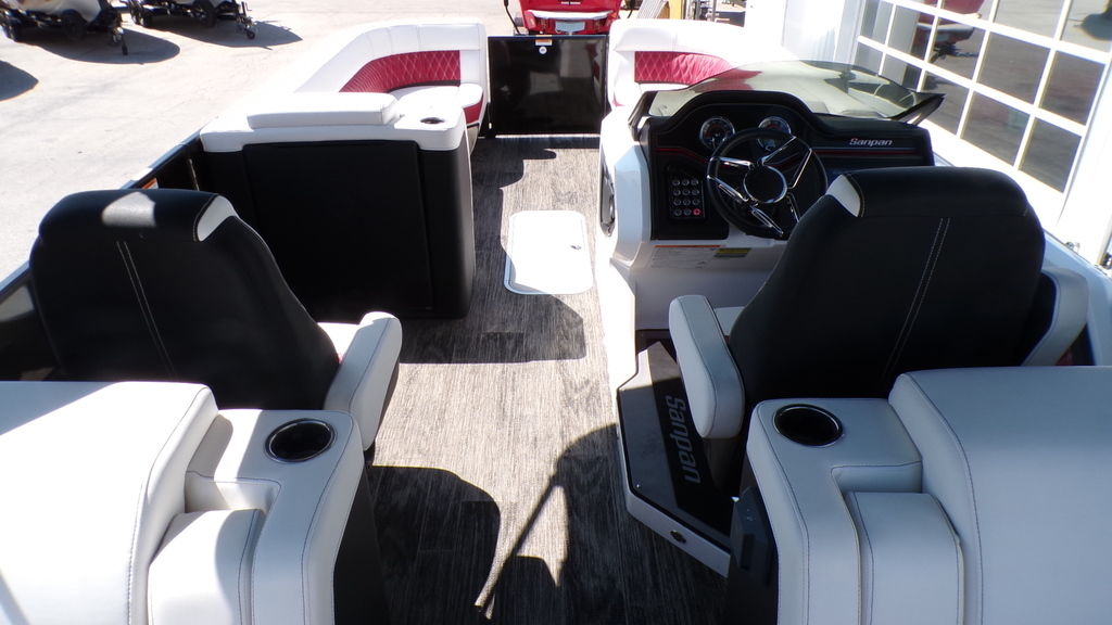 Features may include:Our Sanpan Lounge models offer a multitude of comfortable seating configurations, including a stern Dual Flip Lounge built for all-day relaxation. Kick back, relax and take in the calming water with your favorite person.