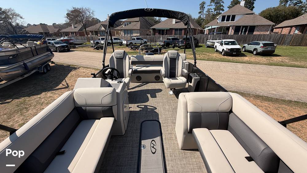 This 2022 Harris Cruiser 230 SLDH Tritoon delivers the perfect blend of performance, comfort, and style. Powered by a Mercury 150 HP 4-Stroke outboard that provides smooth power whether you're cruising the lake or pulling water toys with ease.