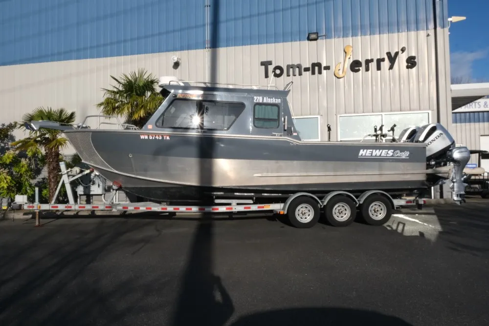 This USED 270 Alaskan comes with the following features:• Twin Honda 250 iST Front/Rear Controls (437hrs)• Honda BFP15 Kicker With Controls At Rear Helm• Lewmar Winch/Anchor/Rode/Chain• Side Cabin Rod Holders• Front Heavy Duty Suspension Seats• Rear Seatbed• Garmin Gps/Sonar/Radar• Standard Horizon Vhf• Trim Tabs• Wallas Diesel Heater/Defrost• Fish Fighter Track System With Rod Holders• Wash Down System• Rear Deck Light• Wired For Scottys• Transom Insulated Fish Box• In Floor Fish Boxes With Macerator Pump• NO TRAILERTom-n-Jerrys Boat Center | To learn more about this listing, give us a call at (360) 466-9955, email us at sales@tomnjerrys.net, or visit our website at tomnjerrys.net.