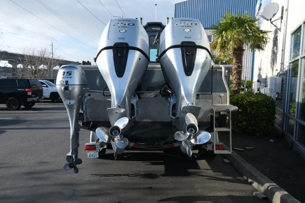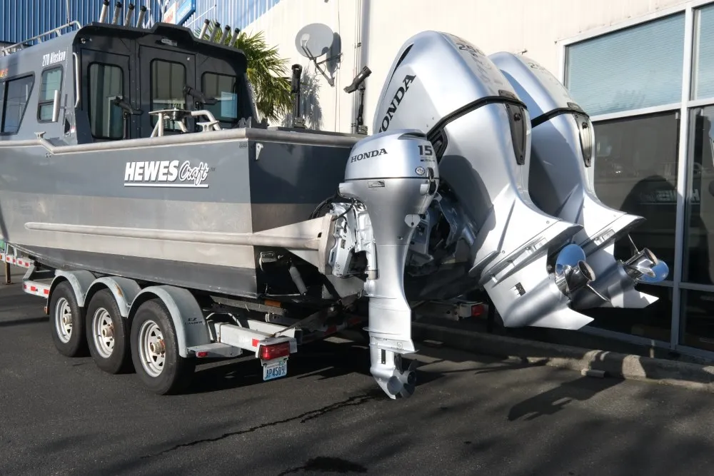 This USED 270 Alaskan comes with the following features:• Twin Honda 250 iST Front/Rear Controls (437hrs)• Honda BFP15 Kicker With Controls At Rear Helm• Lewmar Winch/Anchor/Rode/Chain• Side Cabin Rod Holders• Front Heavy Duty Suspension Seats• Rear Seatbed• Garmin Gps/Sonar/Radar• Standard Horizon Vhf• Trim Tabs• Wallas Diesel Heater/Defrost• Fish Fighter Track System With Rod Holders• Wash Down System• Rear Deck Light• Wired For Scottys• Transom Insulated Fish Box• In Floor Fish Boxes With Macerator Pump• NO TRAILERTom-n-Jerrys Boat Center | To learn more about this listing, give us a call at (360) 466-9955, email us at sales@tomnjerrys.net, or visit our website at tomnjerrys.net.