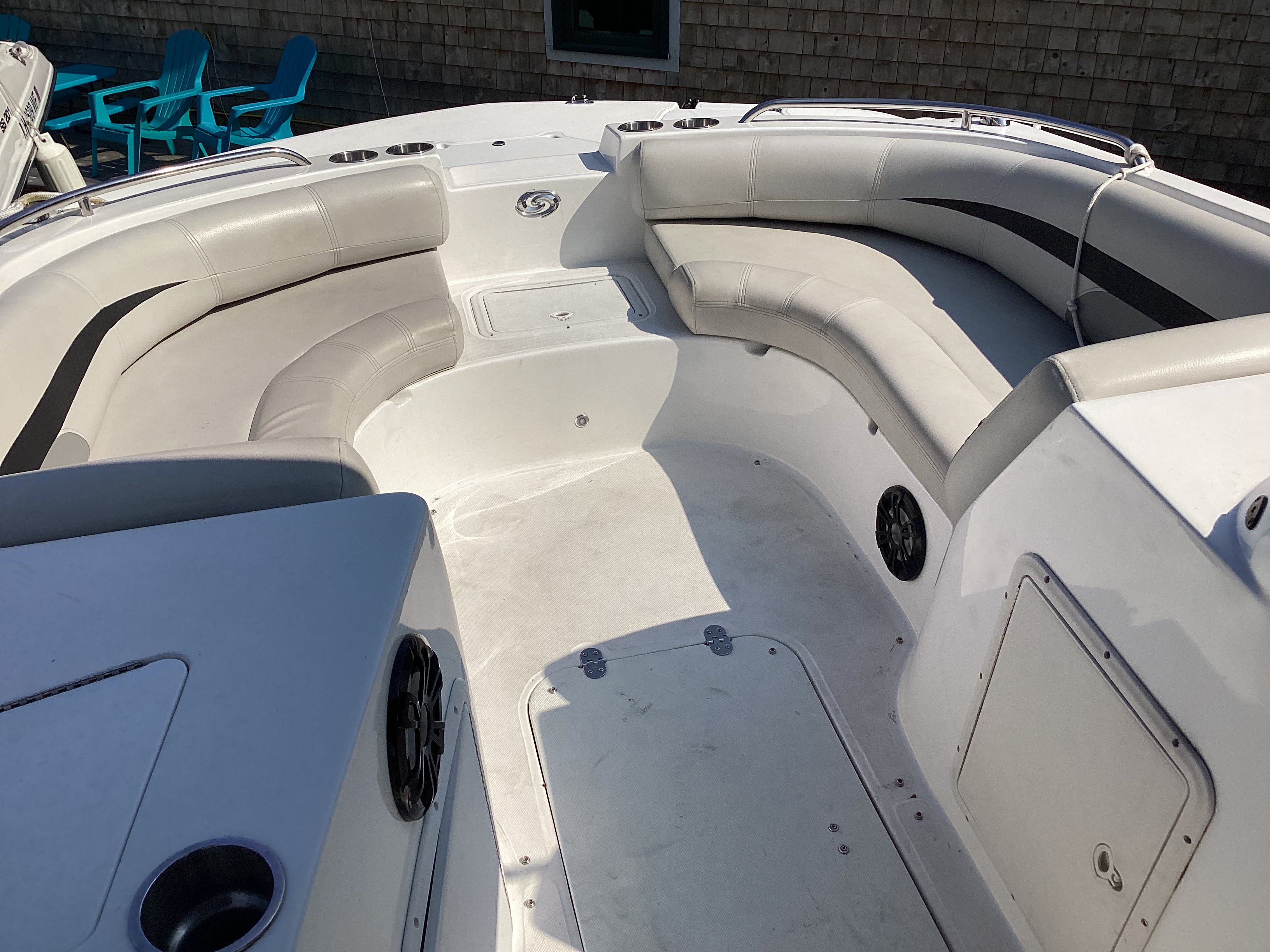 This boat proudly served in the marina’s rental fleet for a few summers, and has been well maintained by our award winning service department. While it may have more hours on it than other boats its age, there’s plenty of good times on the water to be had – think of it as buying a durable car at 25,000 miles. Furthermore, in addition to several years remaining on the Yamaha motor warranty, the sale price includes a bow-to-stern extended warranty package, and the boat fully qualifies for financing options, enabling boaters to get on the water at a low monthly payment. Some customers use this turnkey opportunity as a worry-free way to get on the water with lower costs, or get more boat for the money.
