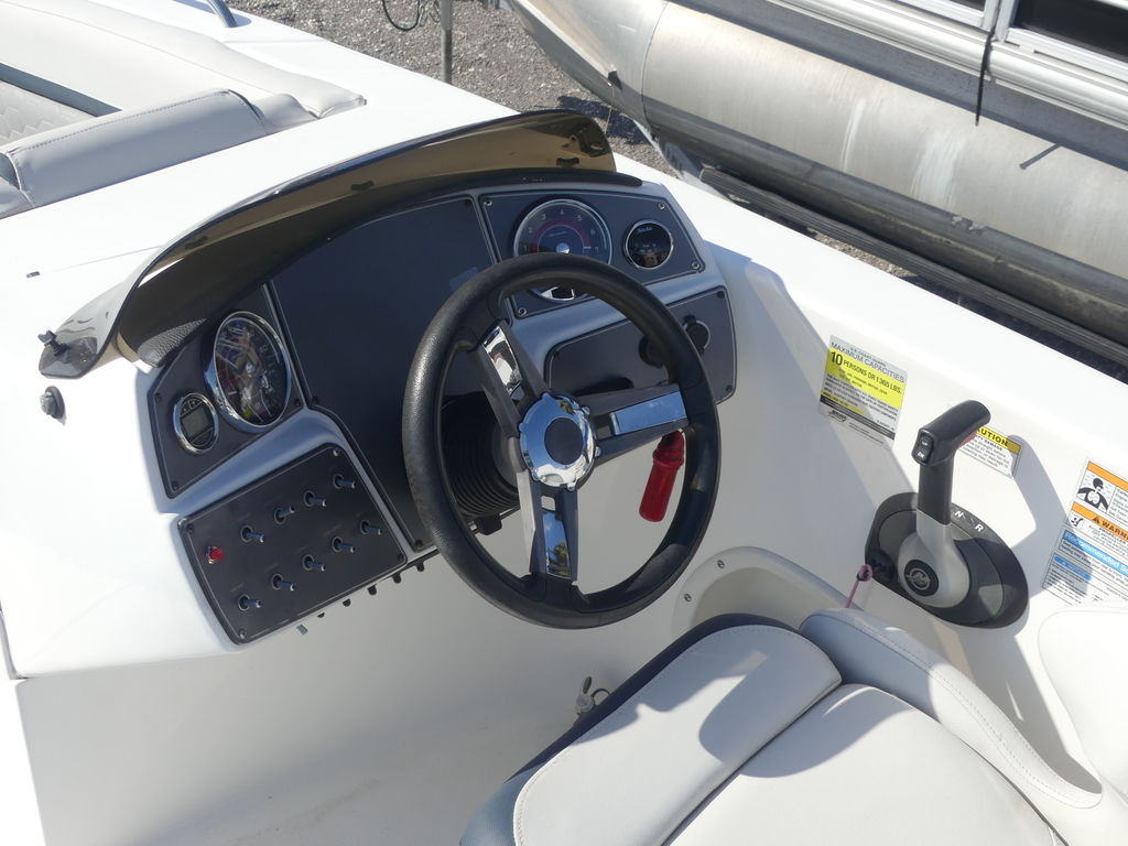 The sporty design of our helm allows you to take control of the water with confidence thanks to its intuitive design. The distinctive red-needle sweep gauges keep tabs on performance. The premium center-mounted fish finder makes every cast count and the convenient recessed phone holder ensures you’re always connected.