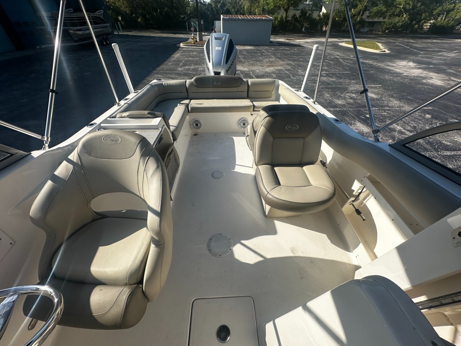 The all around water sports platform for the whole family - no matter what the day brings. It is loaded with amenities for comfort and performance, like comfortable bow seating, a wraparound bench seat in the cockpit, a sink with storage, and a standard potty room in the console. It is also self-bailing and foamed to provide upright and level flotation, making it one of the safest family-friendly boats on the market.