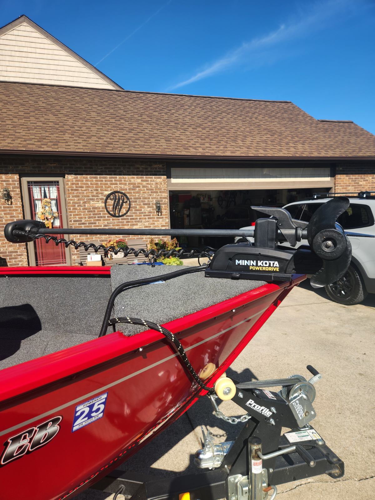 Minn Kotta power drive 12 volt trolling motor with the i pilot system, which includes handheld remote and foot pedal.
