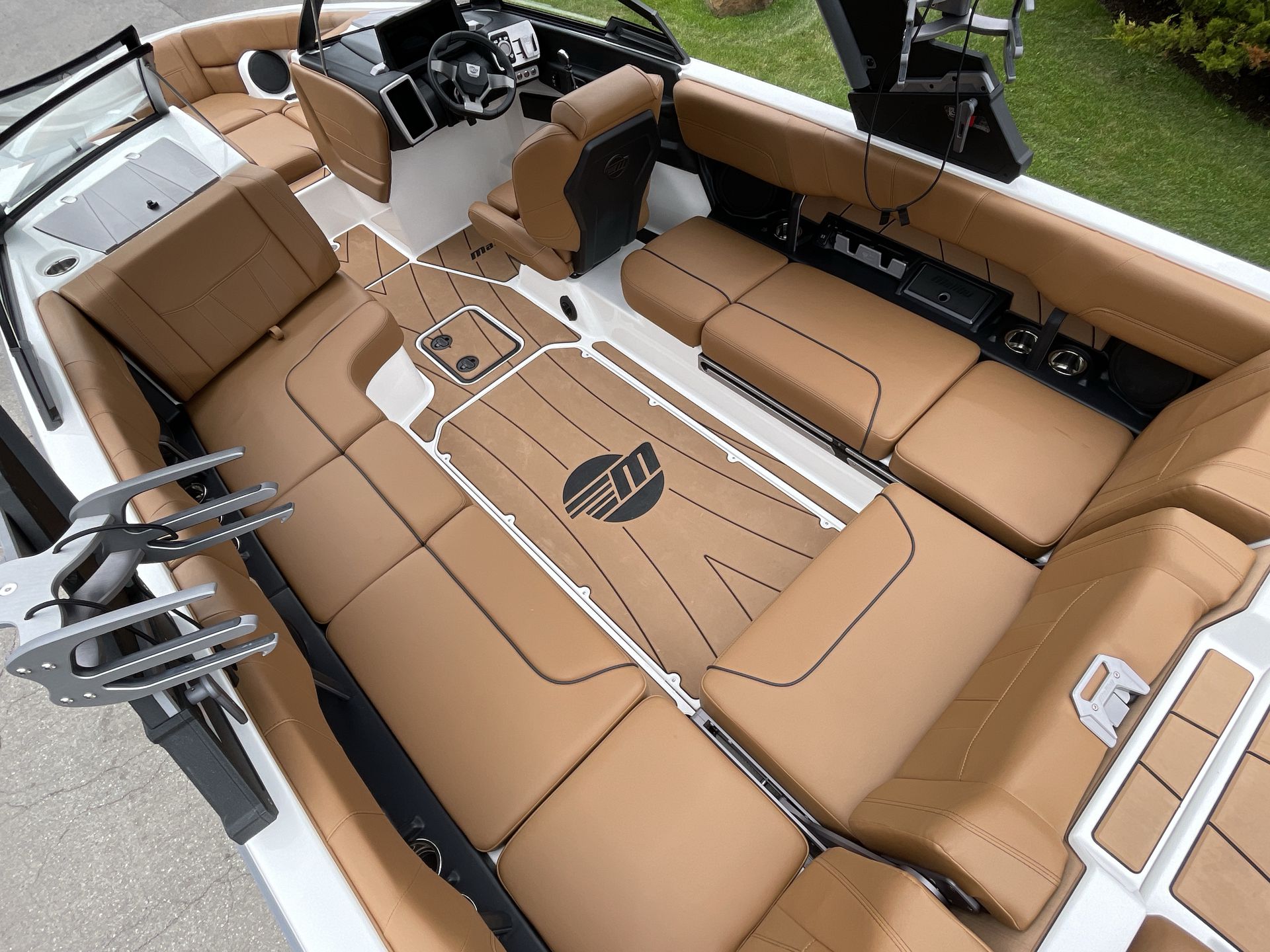 At the helm, the Sport Dash with rotary joystick puts full control at your fingertips. The power lift and swivel helm seat ensures comfort for long days behind the wheel, and the Wideview backup camera makes docking and rider pickup effortless.
