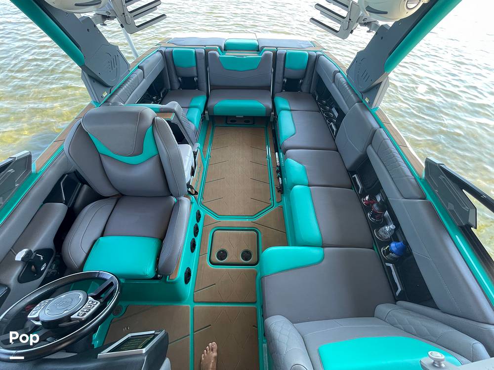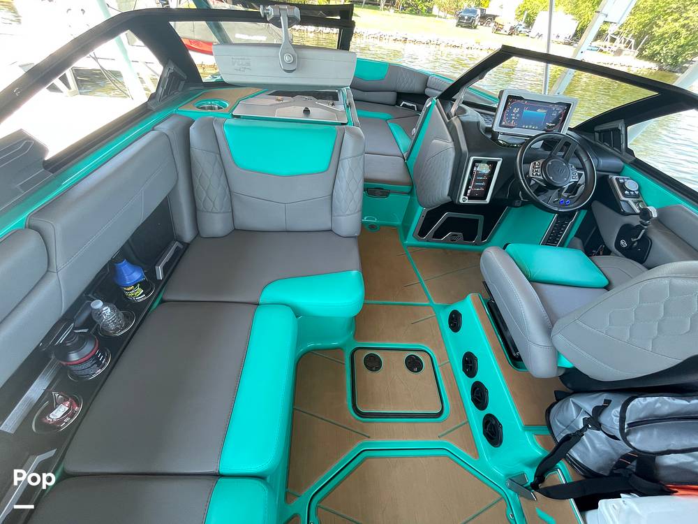 Beneath the sun pad are storage bays to either side and the Malibu Monsoon LT4 V8 engine boasting 607 horsepower with 6.2 liters of displacement.