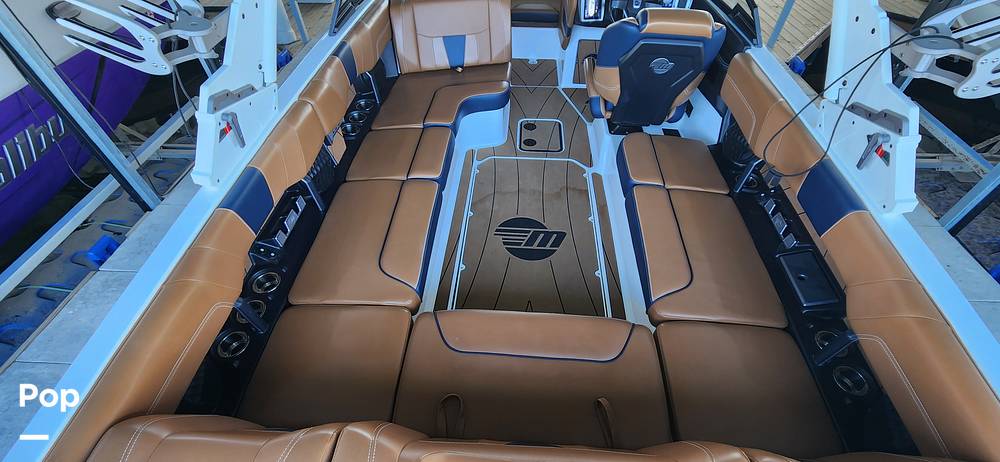 The 2022 Malibu Wakesetter 23 LSV seats up to 16. She's powered by the Malibu Monsoon M5Di engine and only has 292 hours of use. She's equipped with Surf Gate, ballas bags, wakeboard tower, wakeboard rack and so much more!