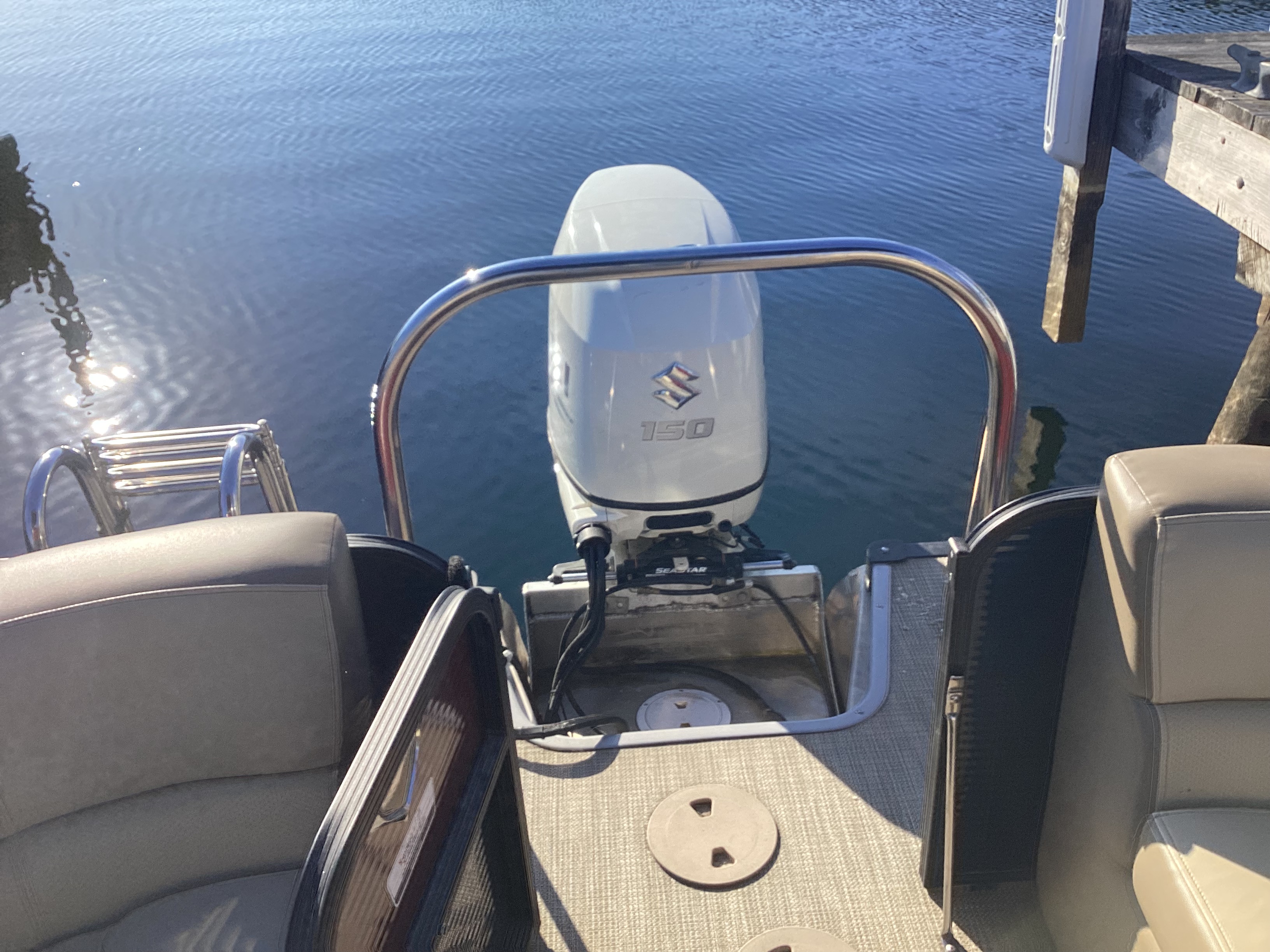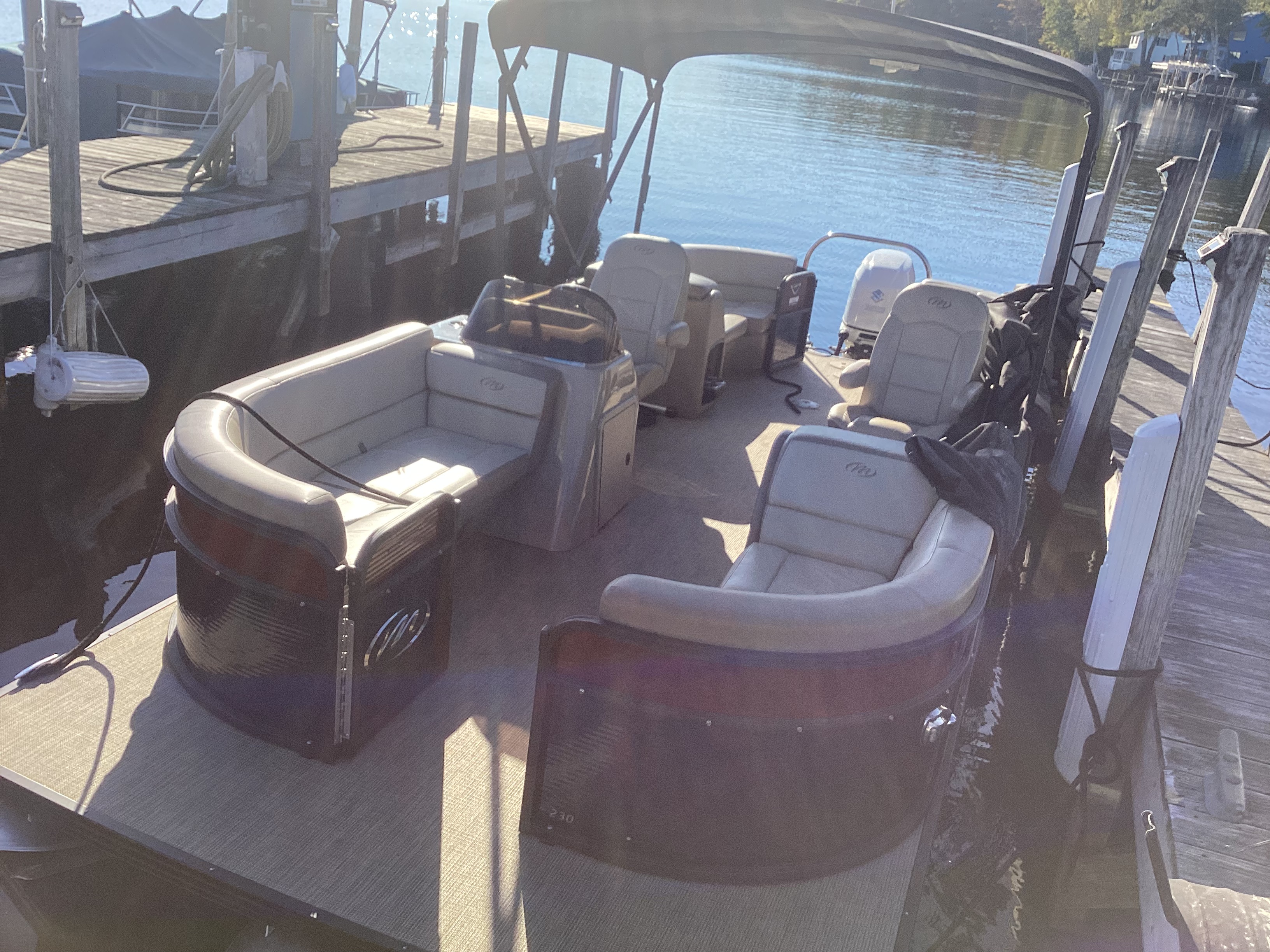 Excellent used trade-in just arrived! Tritoon, 150hp, upgrades, ready to go for spring!