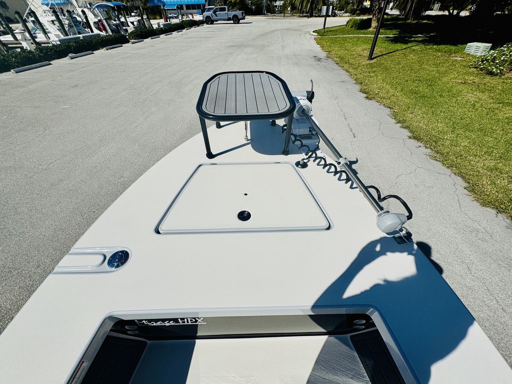The 17 HPX-V is a purpose-built technical poling skiff engineered for anglers who demand precision, stealth, and performance in skinny water. With its vacuum-infused hull and a shallow 8-inch draft, it delivers a quiet, efficient ride whether you're poling across flats at dawn or running open water to your favorite honey holes. Powered by a 70 hp Yamaha outboard, this boat is light, nimble, and built to go where few others will. At a hull length of 16' 9? and a beam of 6' 3?, the boat balances compact trailerability with serious fishing functionality. Every detail — from recessed hardware to dry storage compartments — reflects Maverick’s commitment to quality and angler-focused design. Whether you're stalking reds, trout, or tailing bonefish, this boat adapts to your style and terrain.