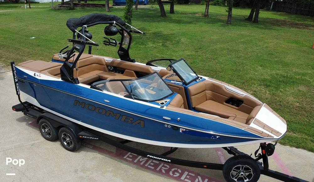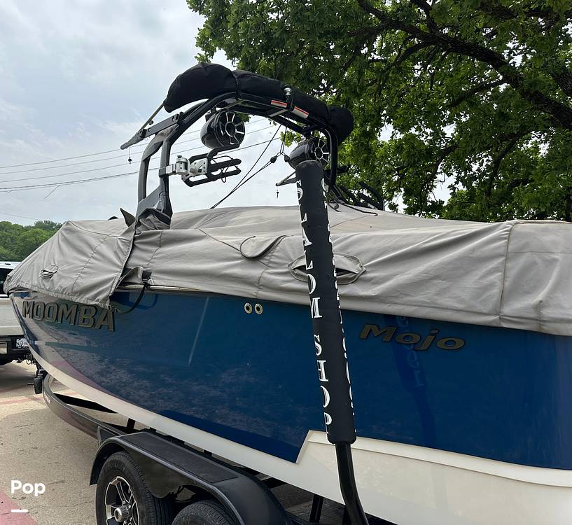 This 2022 Moomba Mojo is a 25'-length overall ski/ wakeboard boat in Lewisville, Texas.