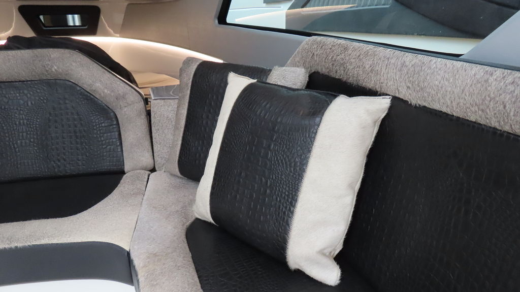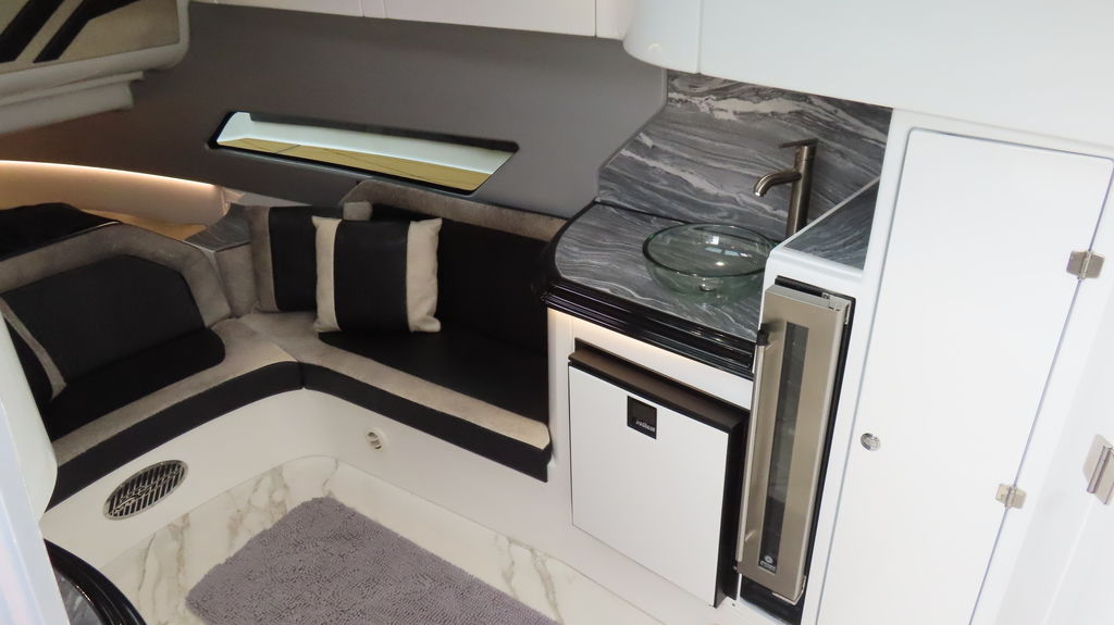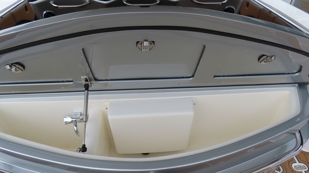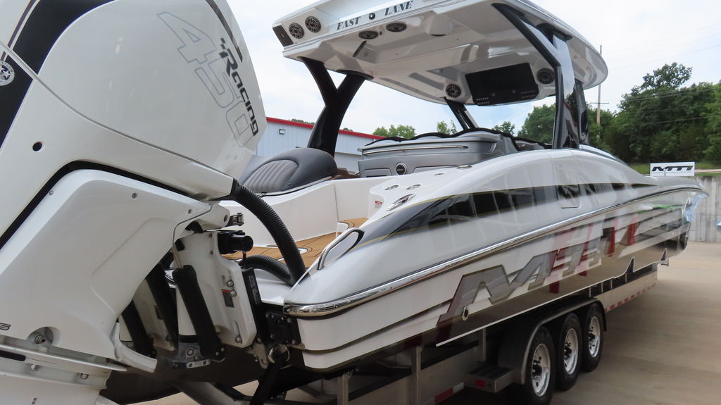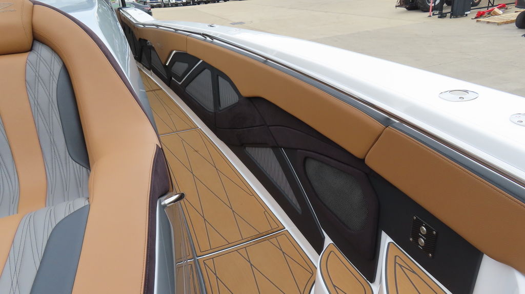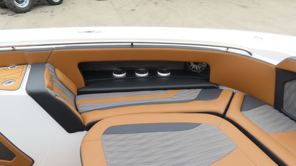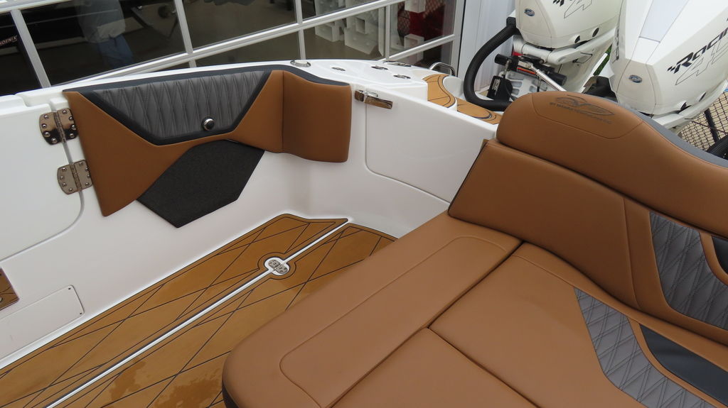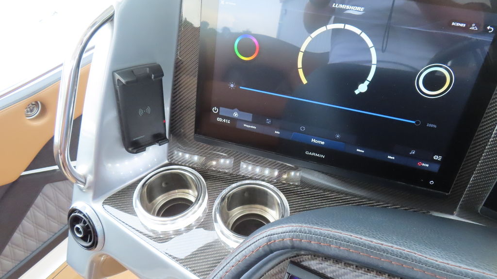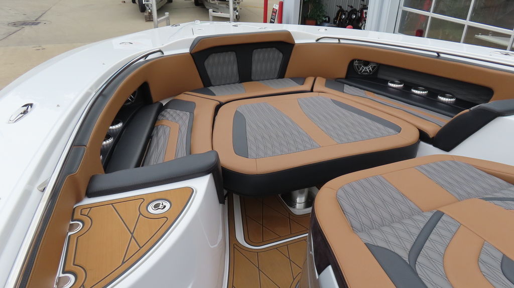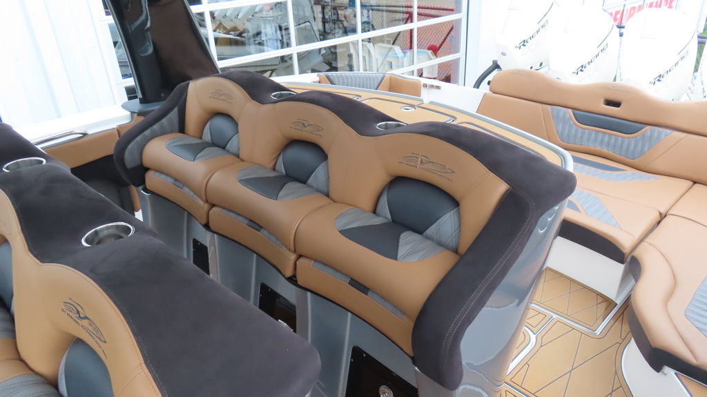 Upgraded Interior, Cool Touch Upholstery, SeaDeck Flooring, Cockpit Cooler, Stage 3 Stereo Wing Speakers, Quad Garmin setup, 32? mounted Smart TV in cabin, Carbon fiber wind deflectors, Bow thruster, underwater lighting, Interior color changing lights, extended rear seat for lounge layout, underwater lighting, custom scuba tank holders, Cabin A/C w/ Dash Blowers, Wireless Phone Chargers, Custom Alcantera Interior Accents, Chill Plate for cooler, Bottle Holders, Bow Filler Cushion, Bow Table, Windlass Anchor, Cabin Sink, Wine chiller, Refrigerator, Granite floors, and Much More!