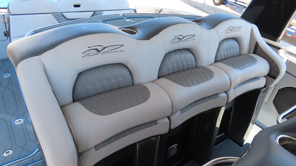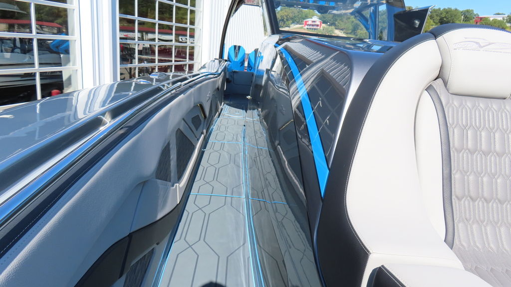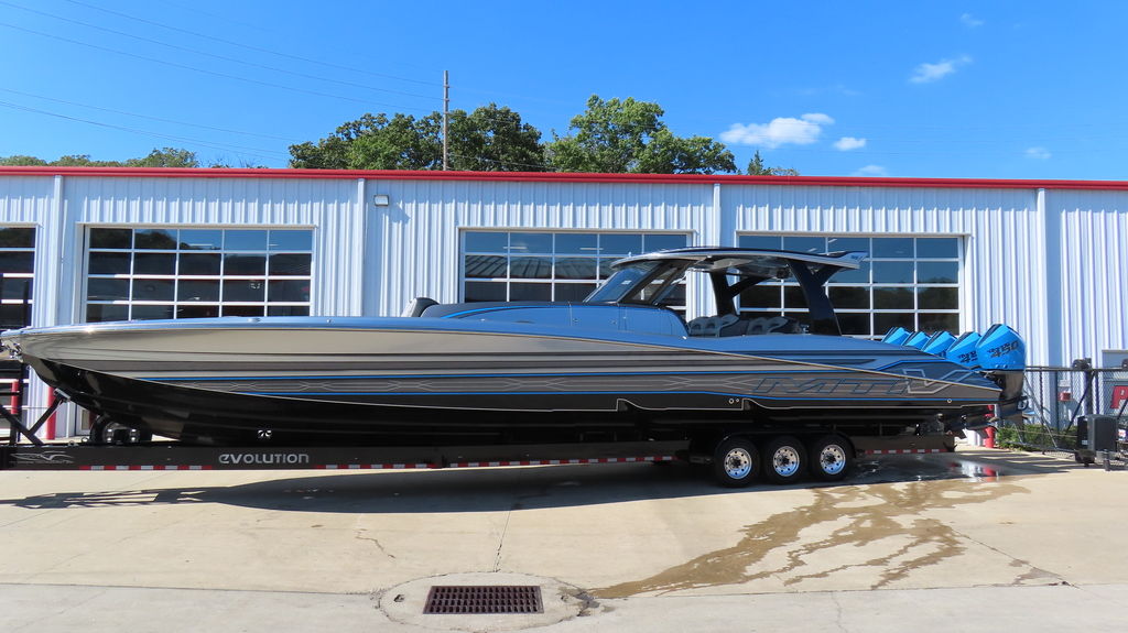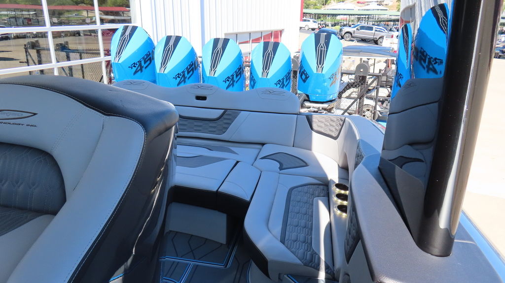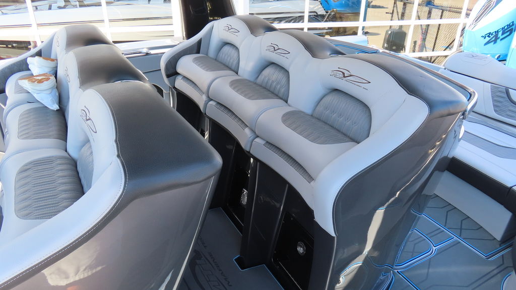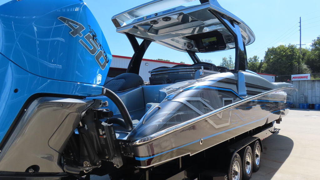 2022 MTI 50v with Quint 450r w/ 430 hours. CARBON LAYUP! It has granite floors, granite countertops, natural lighting, custom painted cabinets, Inverter A/C, hot water, 5 Garmin Chartplotters including a Bow Garmin and Upper Helm Garmin, Air Condition/Heat w/ Dash Blowers, Seadek Flooring, Huge JL Audio/Fusion Stereo, Wine Chiller -Refrigerator 12v/110v, Bow Table that retracts into the floor w/ bow filler cushion, Wireless Phone Chargers, Custom Painted Engines, Enclosed Shower/Head, Cabin and Bar Sink, Chill Plate in Cooler, Forward and rear sun shades, Bow and Stern Thruster, LED Lighting throughout with Underwater lights, Billet Aluminum Cleats, Myco painted aluminum Trailer Included.