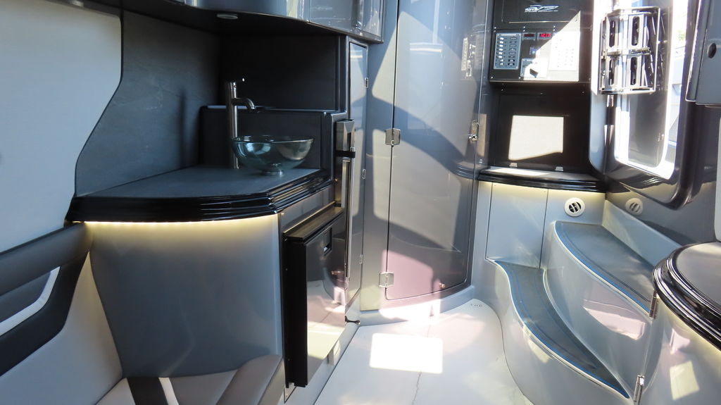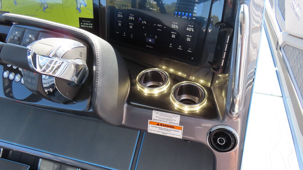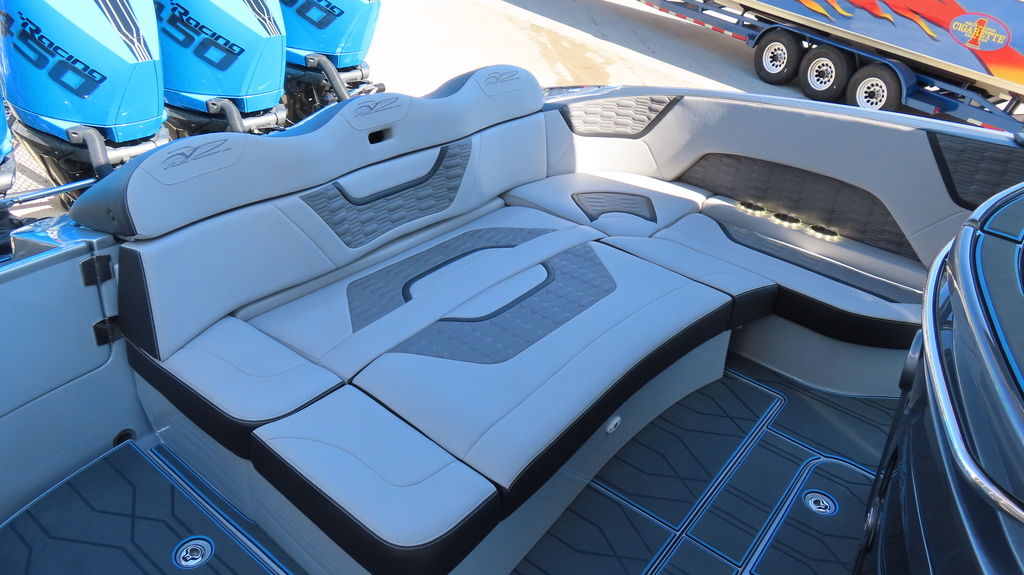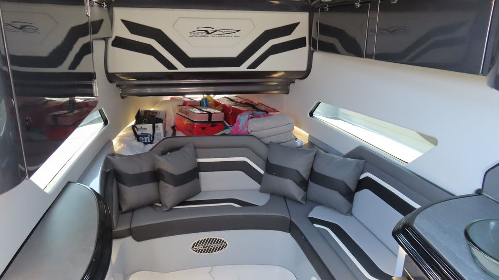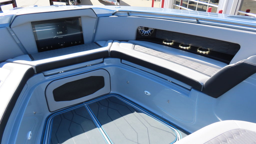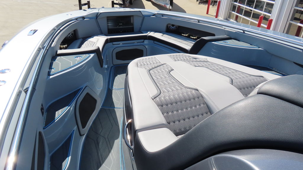2022 MTI 50v with Quint 450r w/ 430 hours. CARBON LAYUP! It has granite floors, granite countertops, natural lighting, custom painted cabinets, Inverter A/C, hot water, 5 Garmin Chartplotters including a Bow Garmin and Upper Helm Garmin, Air Condition/Heat w/ Dash Blowers, Seadek Flooring, Huge JL Audio/Fusion Stereo, Wine Chiller -Refrigerator 12v/110v, Bow Table that retracts into the floor w/ bow filler cushion, Wireless Phone Chargers, Custom Painted Engines, Enclosed Shower/Head, Cabin and Bar Sink, Chill Plate in Cooler, Forward and rear sun shades, Bow and Stern Thruster, LED Lighting throughout with Underwater lights, Billet Aluminum Cleats, Myco painted aluminum Trailer Included.