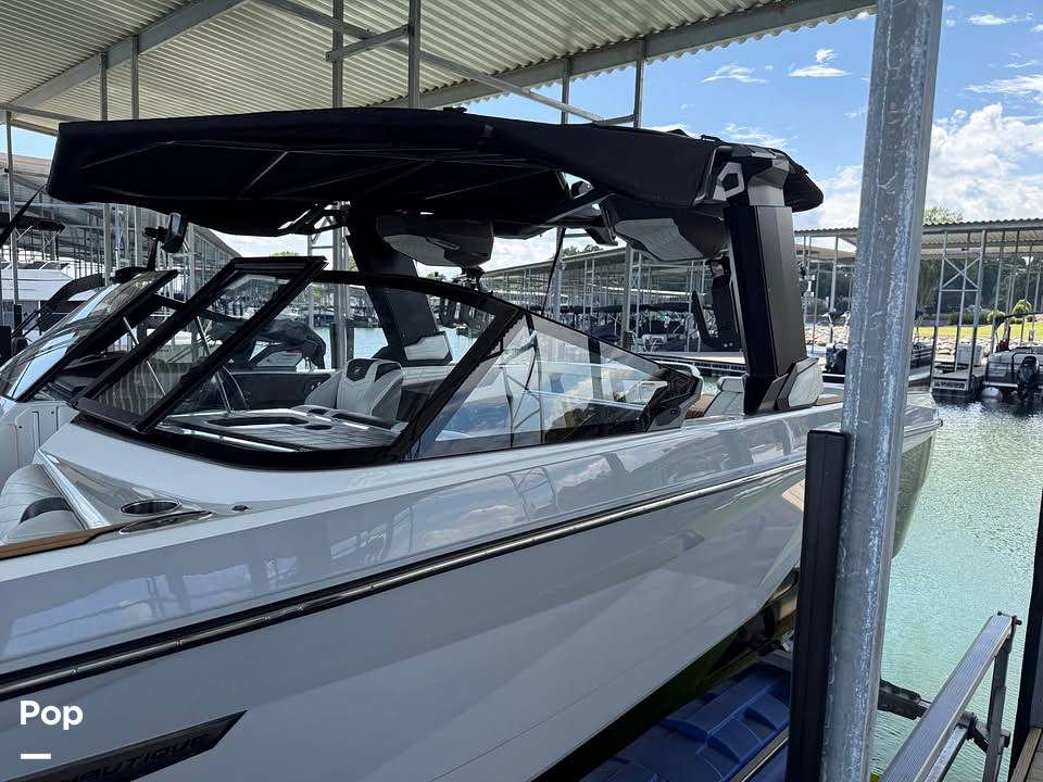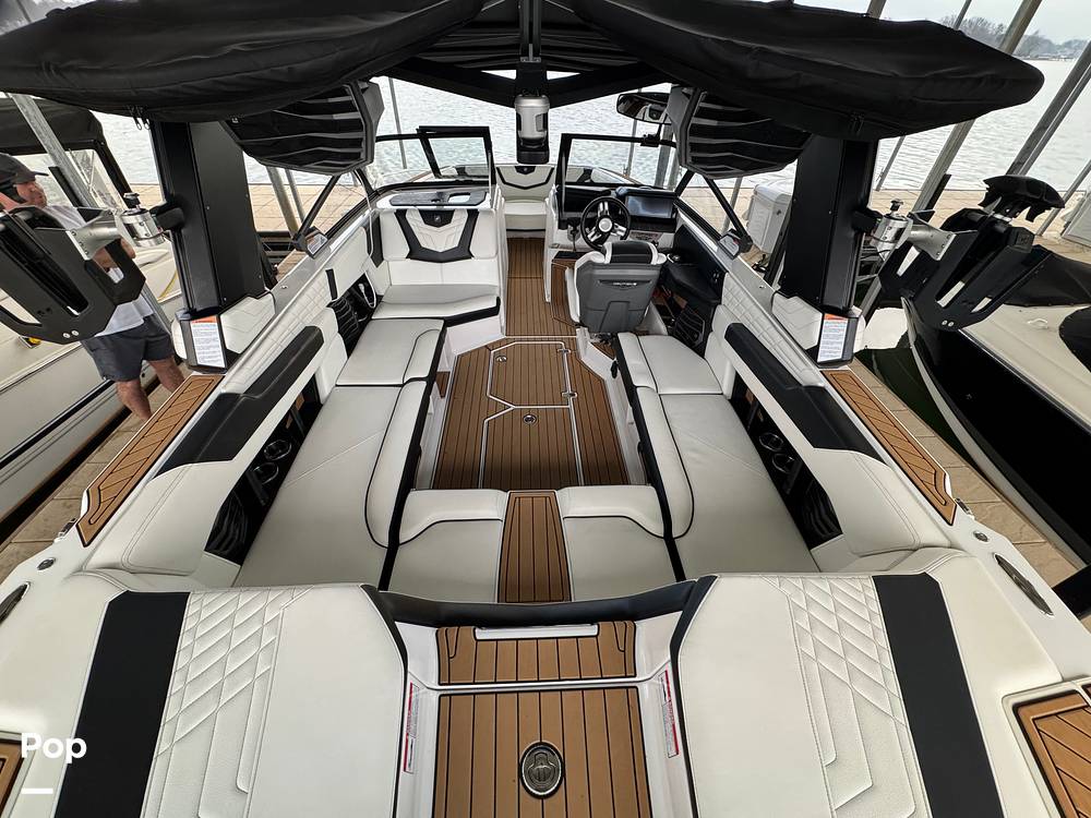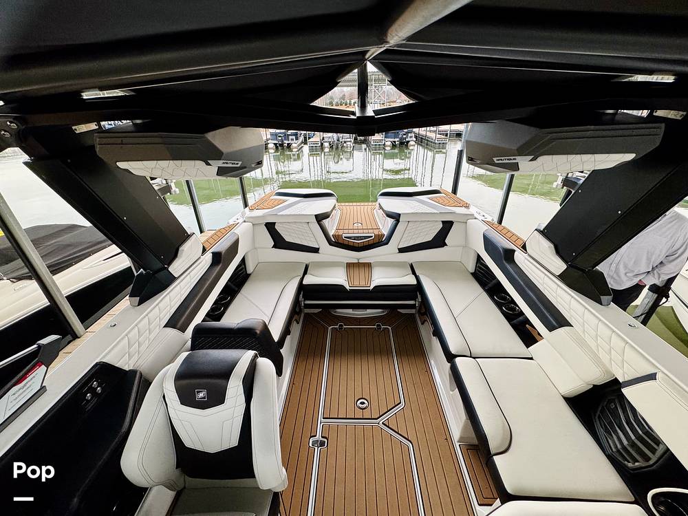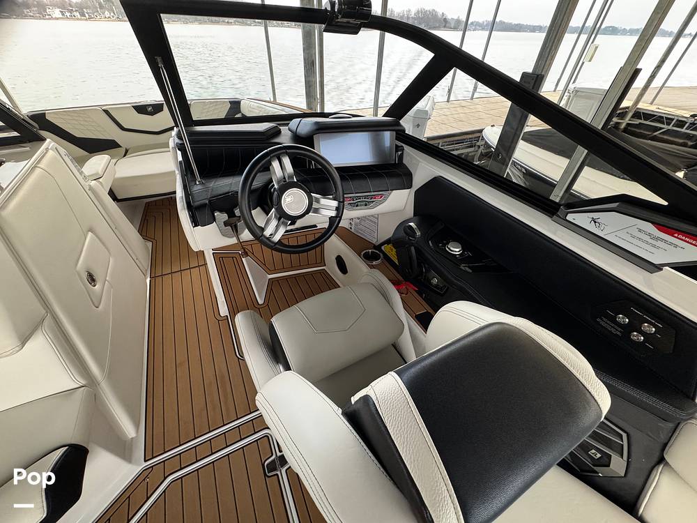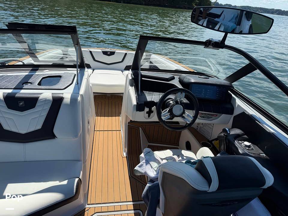 Inside, the G23 offers a spacious and thoughtfully designed layout. The 12.4" LINC Panoray touchscreen provides control of navigation, ballast, speed, and onboard systems. A premium JL Audio sound system with multiple speakers and subwoofer enhances the on-water experience. Wireless phone charging at the helm and an ergonomic command dial make adjustments easy while underway.