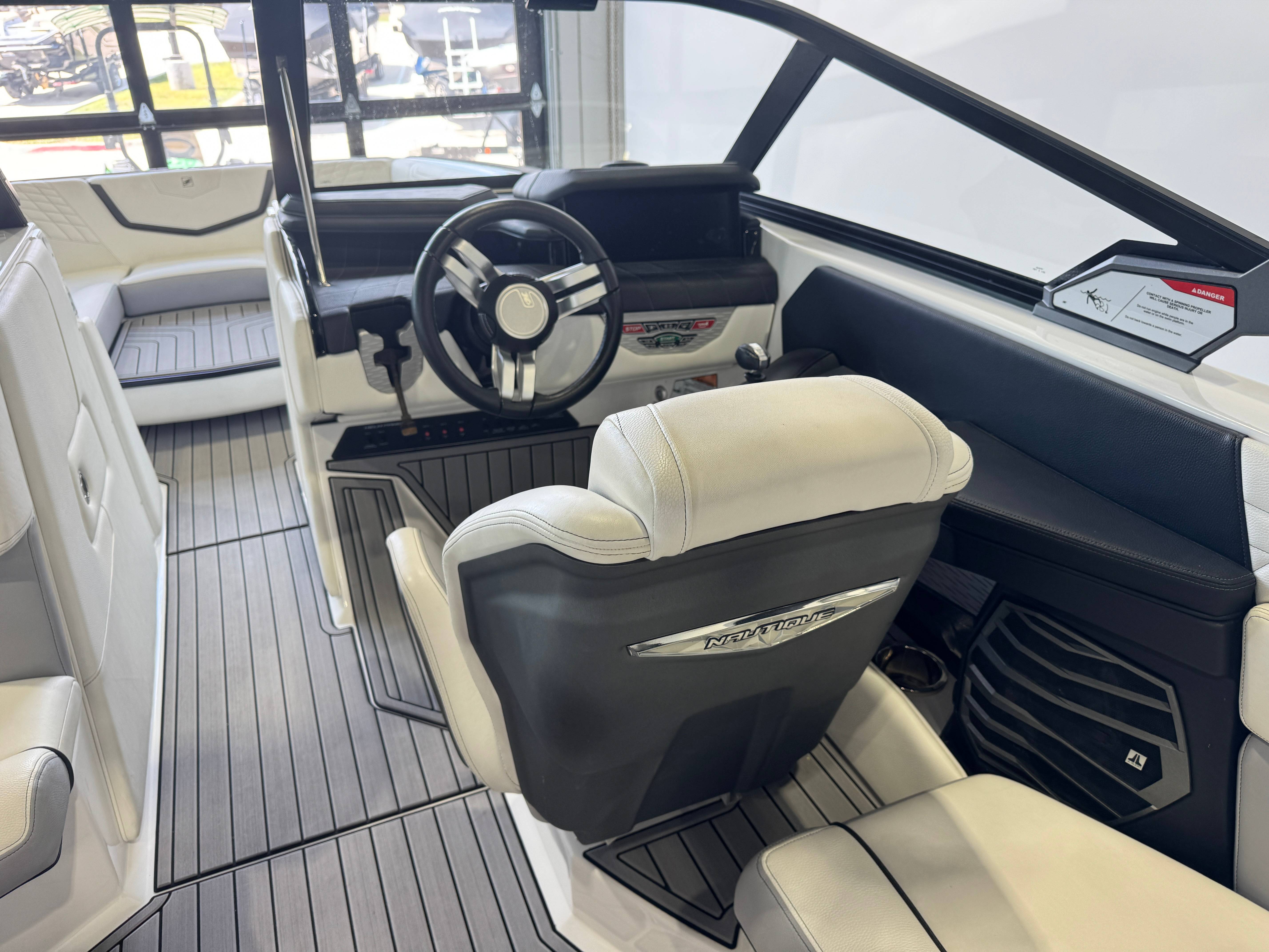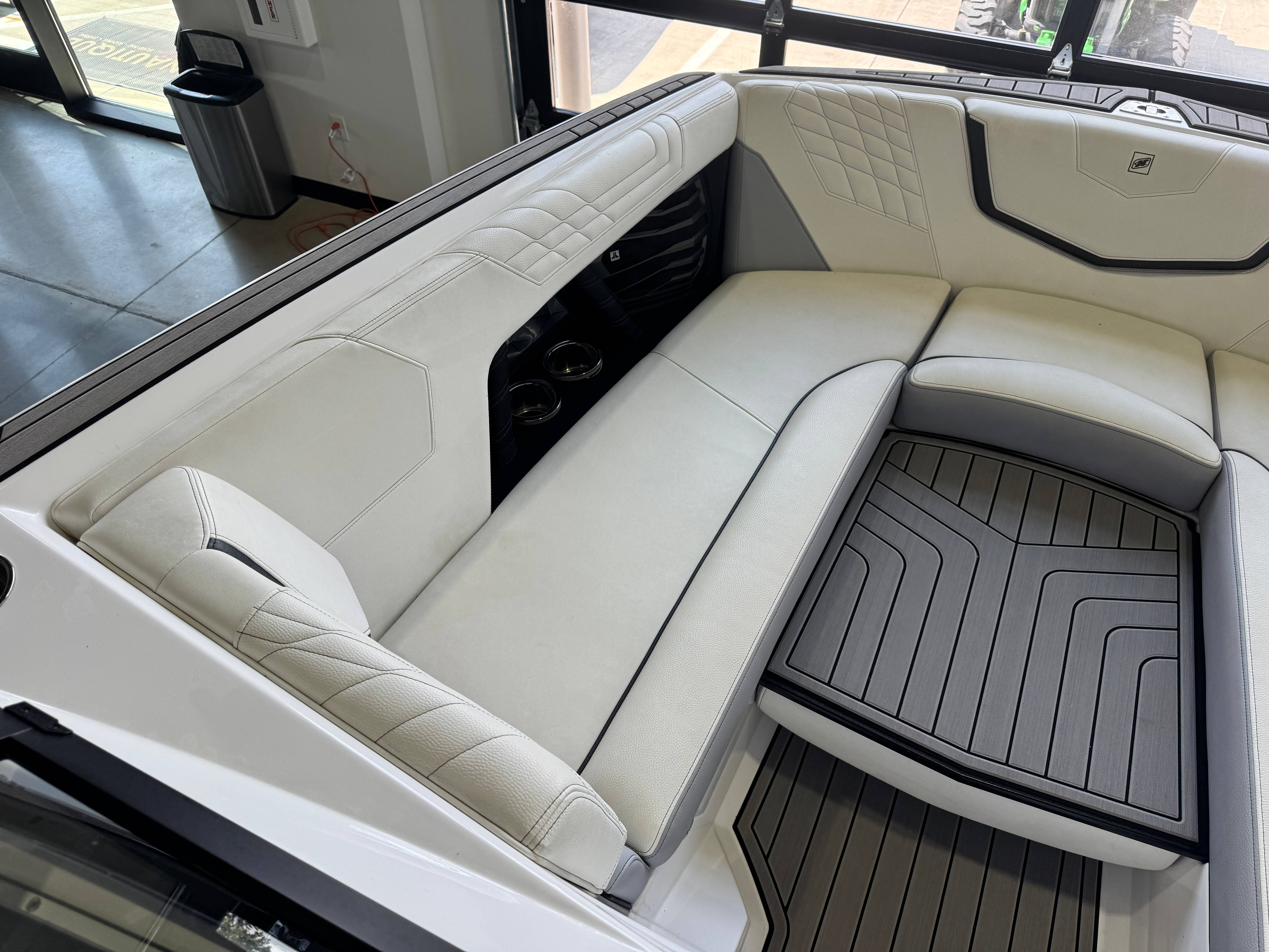 2022 Super Air Nautique G25 ZR7 475HP - 7.4L Bimini - Tower Mounted Tri-Fold with Surf Pockets Extended Sun Shade - Aft Nautique Strapless Board Racks Tower Prep Kit JL Audio M Series Studio(Pre-Wired 8 Channel Amp) Tower Speakers - 2 Pair JL Audio M6 Series 880x Series Speakers Tower Shock 3000N $0.00 Maps US-Canada $503.00 Battery Maintenance System 110 (Integrated Charger-Dual Battery) Ballast - Supplemental 1,450 LBS Heater with Defroster Ladder - Platform Access Lights - Enhanced Courtesy Lighting Package Lights - Underwater LINC Panoray - Navionics Maps Nautique Integrated Steering Assist Phender Pro (6) - Boat Fender Attachment System Table - Stowable Seating - Bow Filler Cushion Seating - Sunpad Filler Cushion Stereo - JL Audio M6 Series Studio Elite (Wavefront) Walk-Thru Air-Dam (Pocket Door) 2022 Super Air Nautique G25 Standard Items listed below Nautique Configurable Running Surface with Hydro-Plate Nautique LINC PANORAY with Helm Control, Zero Off GPS Speed Control Nautique Surf System™ with WAVEPLATE & Surf Pipe Exhaust Freshwater Engine Flush System Wake Package(Integrated 2850 lbs Ballast System) Power Management Access with Dual AGM Batteries Lighting-Navigation and Docking Light Array, LED Courtesy Lights Cleats (4), Coolers 2 (Removable), Waste Receptacle Sliding Reversible Stern Seat and Flip-Up Lounge Seat (Port) Rear Facing Transom Seating GoPro™ Ready Rotating Tow Point MyNautique™ Connectivity Platform Premium Mirror, Wireless Charging Stereo - JL Audio® M6 Series Elite with DSP (Stereo, 6 Speakers, 10in Subwoofer and 8 Channel Amp) if Stereo JL Audio® M6 Series Studio Elite (Wavefront) not selected Flight Control Tower (Textured Finish) with Nautique Awareness Camera if Flight Control Tower Actuated is not selected Rotating Wakeboard/Wakesurf Racks if Nautique Strapless Board Racks is not selected